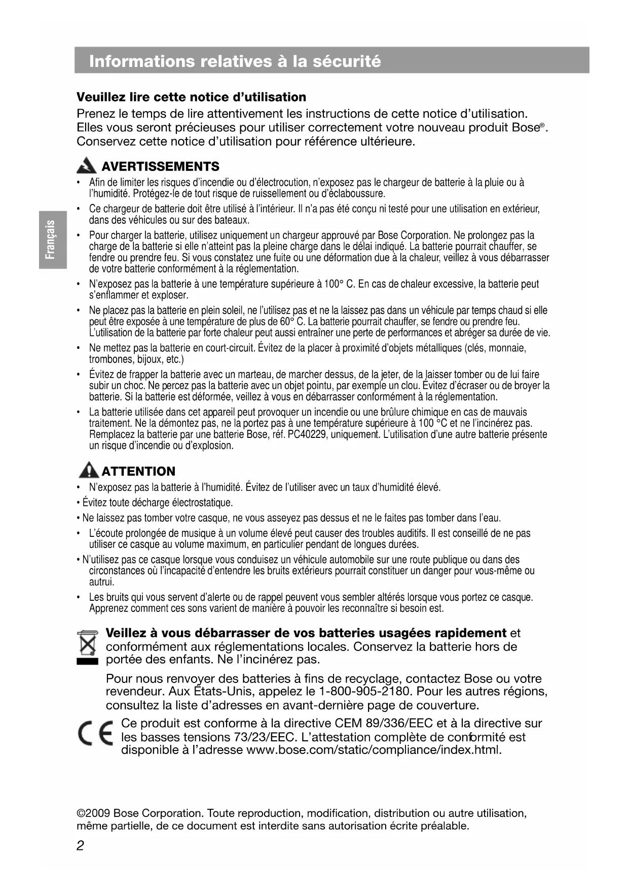 ©2009 Bose Corporation. Toute reproduction, modification, distribution ou autre utilisation,