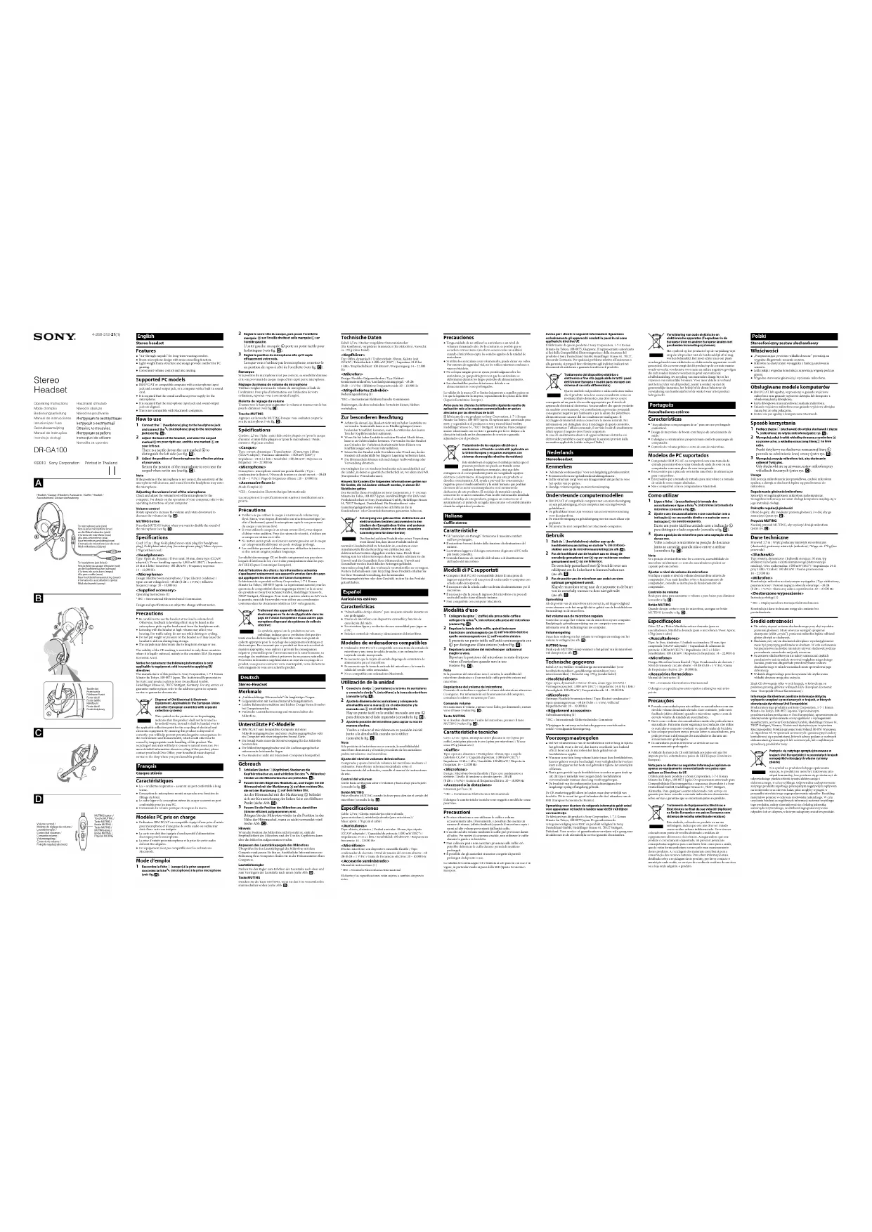 Téléchargez la notice de votre Ecouteur au format PDF gratuitement ! Retrouvez votre notice DRGA100 - SONY et reprennez votre appareil électronique en main. Sur cette page sont publiés tous les documents nécessaires à l'utilisation de votre appareil DRGA100 de la marque SONY.