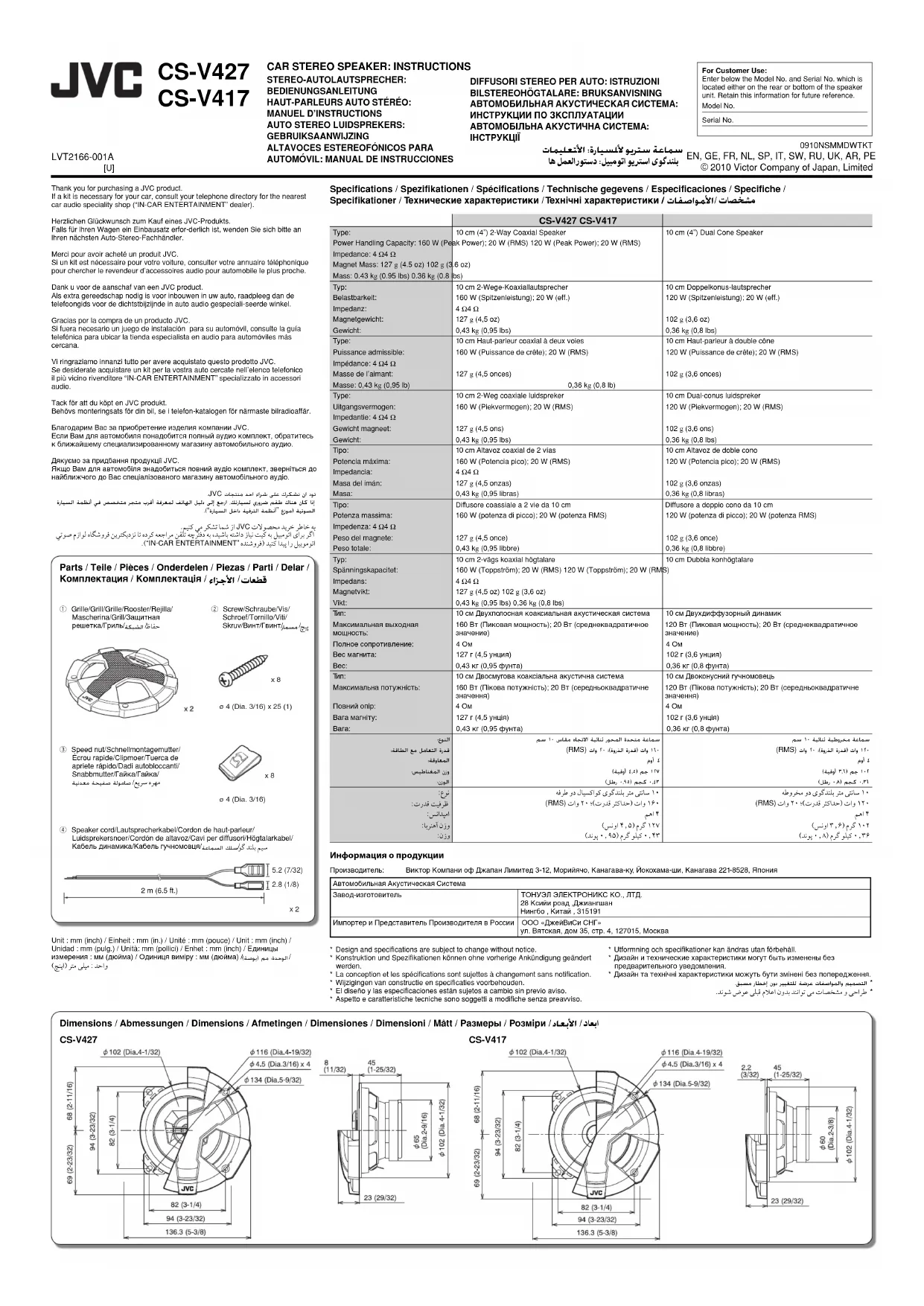 Téléchargez la notice de votre Haut-parleur au format PDF gratuitement ! Retrouvez votre notice CSV627 - JVC et reprennez votre appareil électronique en main. Sur cette page sont publiés tous les documents nécessaires à l'utilisation de votre appareil CSV627 de la marque JVC.
