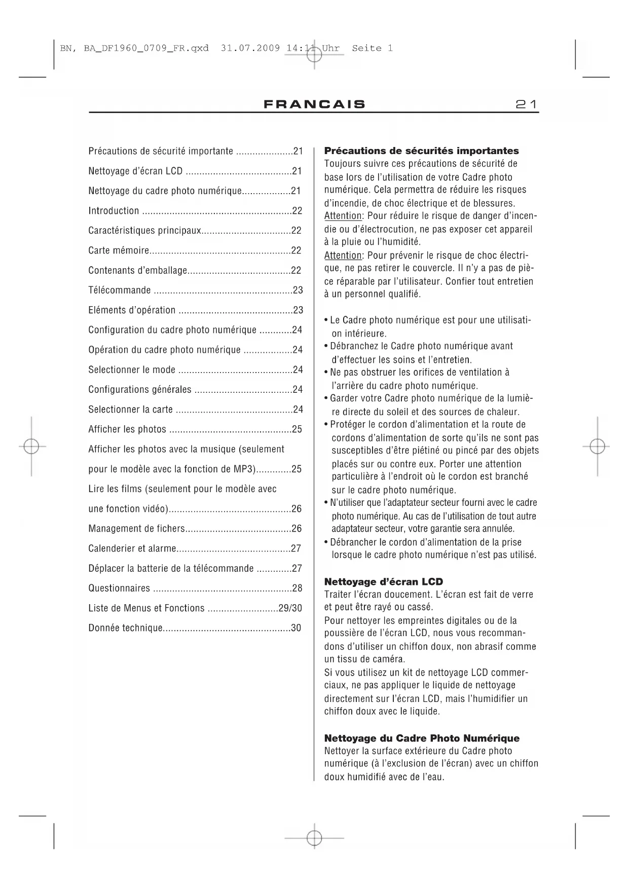 BN, BA_DF1960_0709_FR.qxd 31.07.2009 14:11 Uhr Seite 8FRANCAIS 29