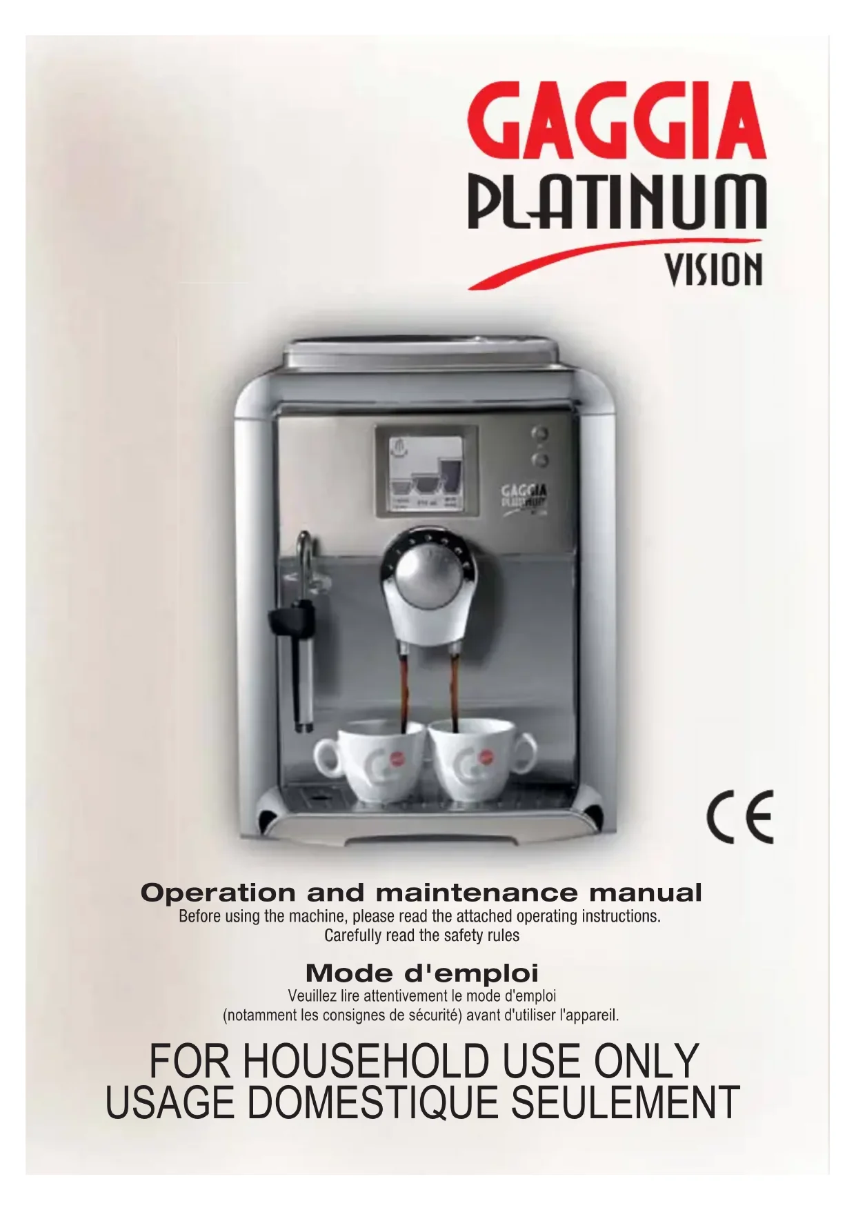 Platinum Vision - Machine à café GAGGIA - Notice d'utilisation et mode d'emploi gratuit