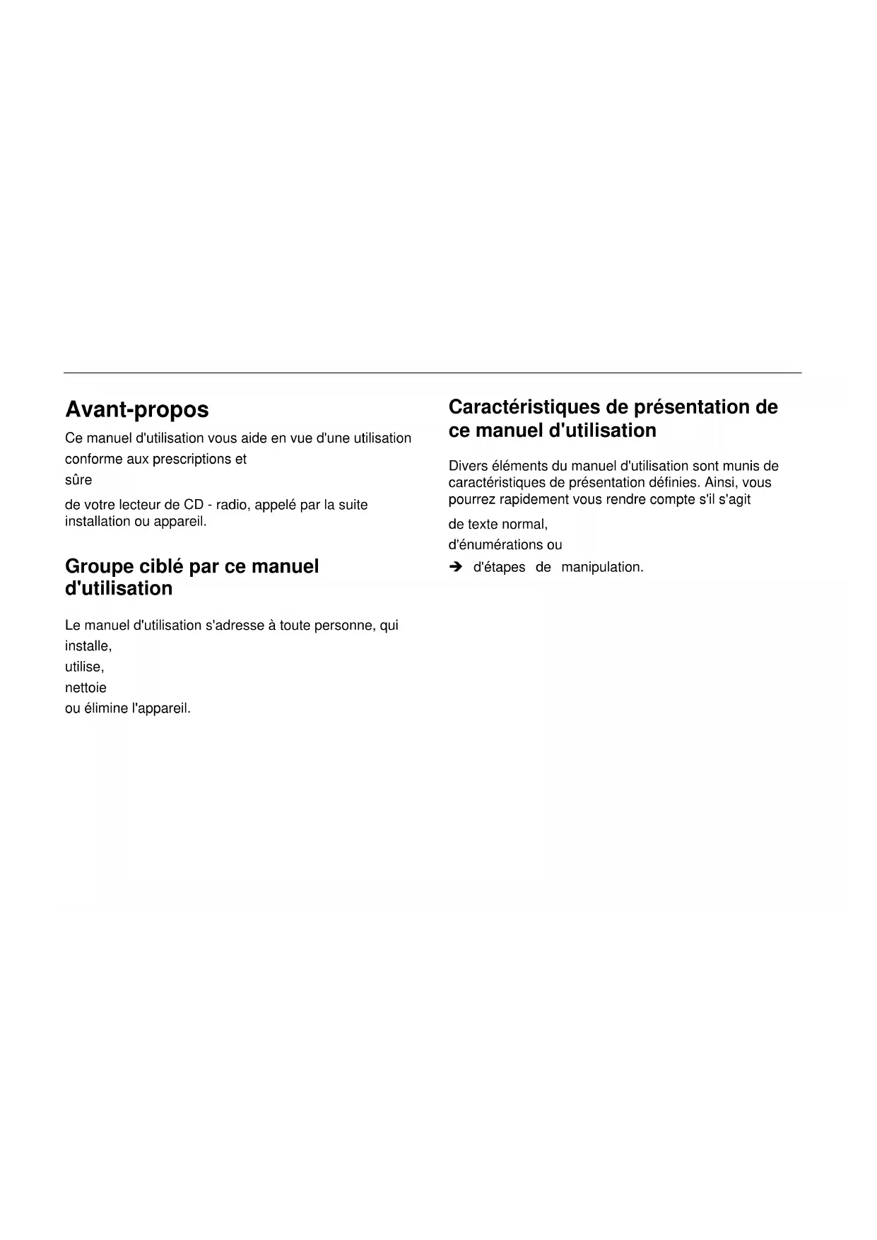 de votre lecteur de CD - radio, appelé par la suite installation ou apparéil.