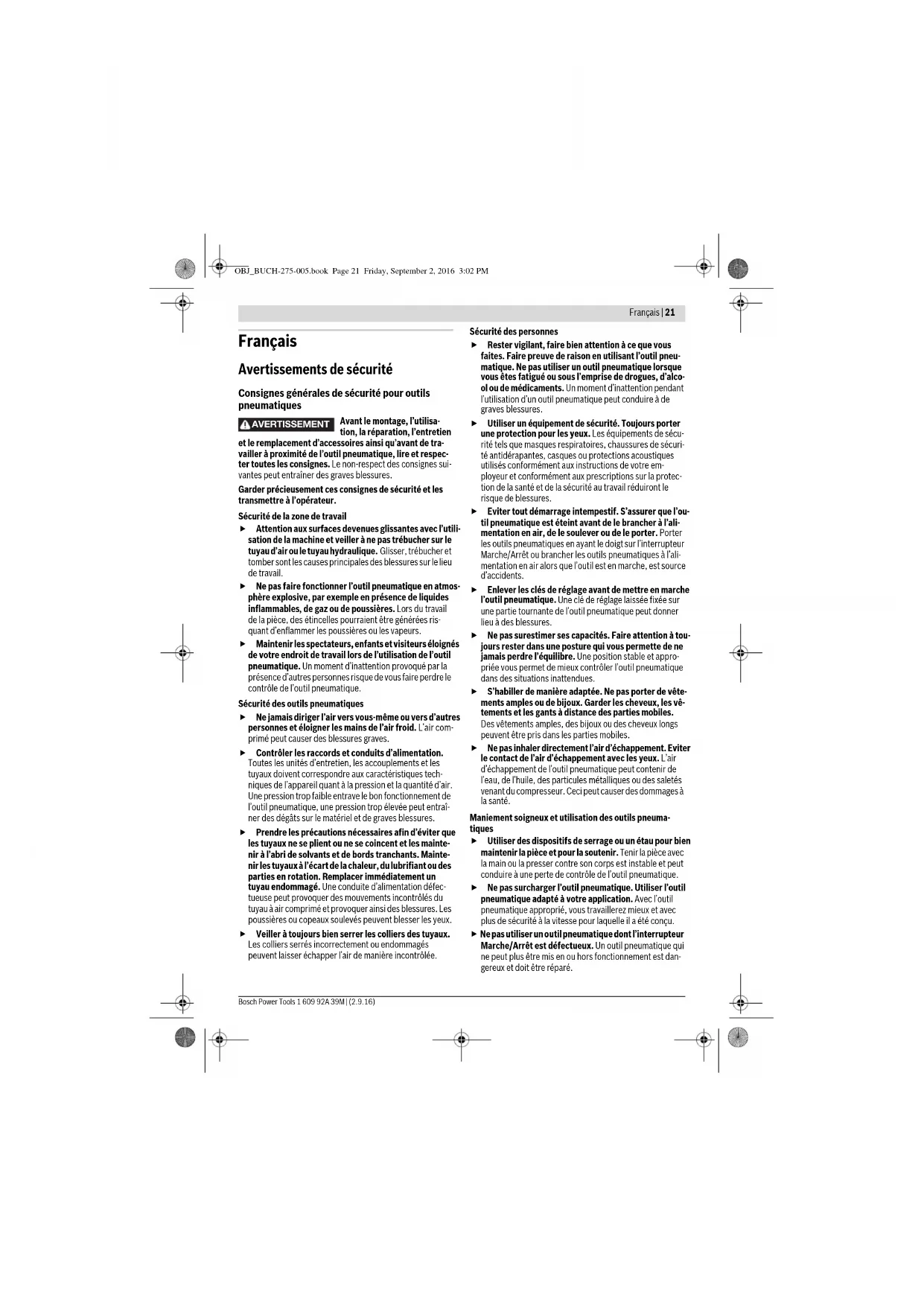 OBJ_BUCH-275-005.book Page 20 Friday, September 2, 2016 3:02 PMFrançais | 21 Bosch Power Tools 1 609 92A 39M | (2.9.16) Français
