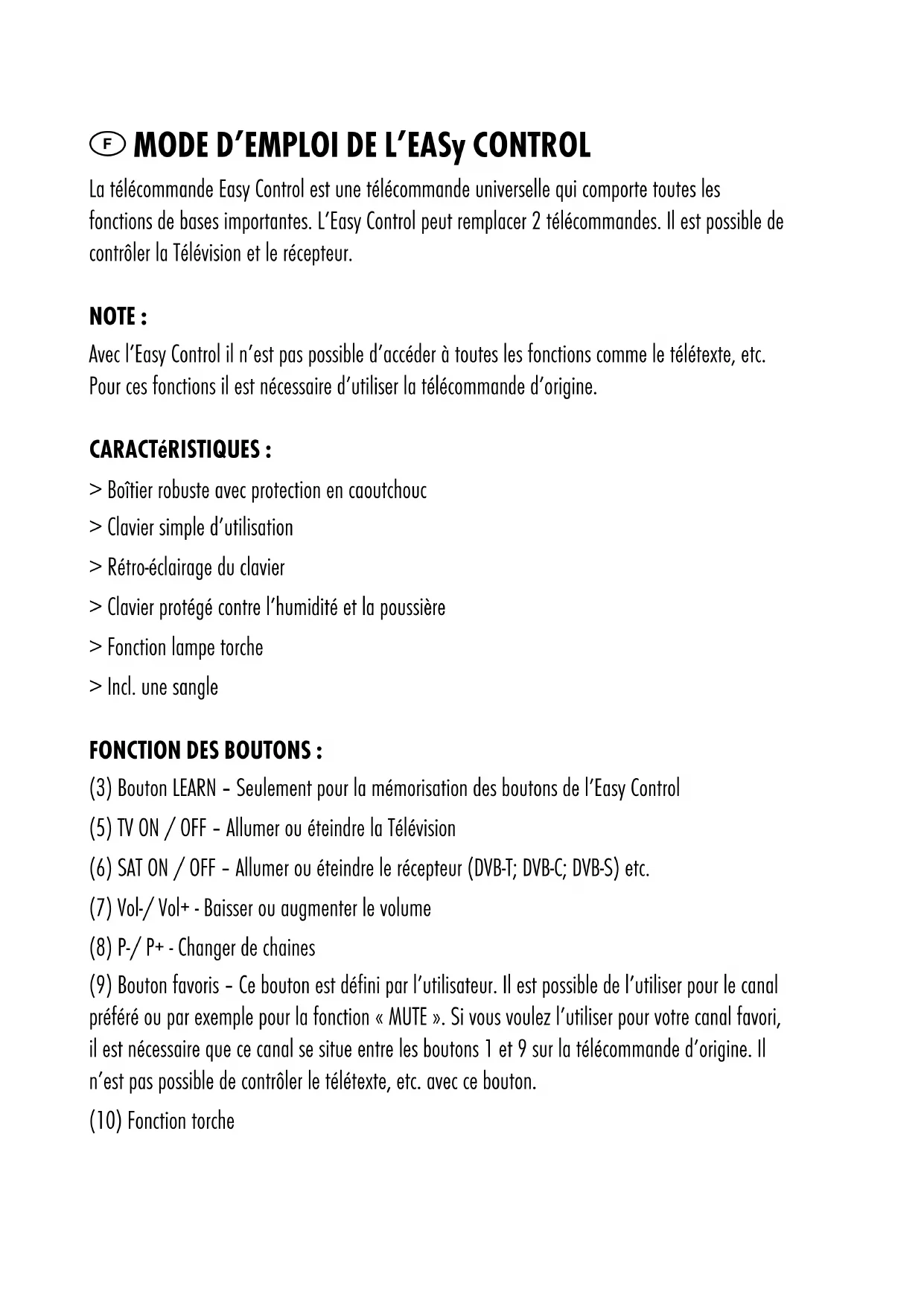 | Utilisation | Facilité d'utilisation avec des boutons ergonomiques, programmation simple pour contrôler plusieurs dispositifs. |