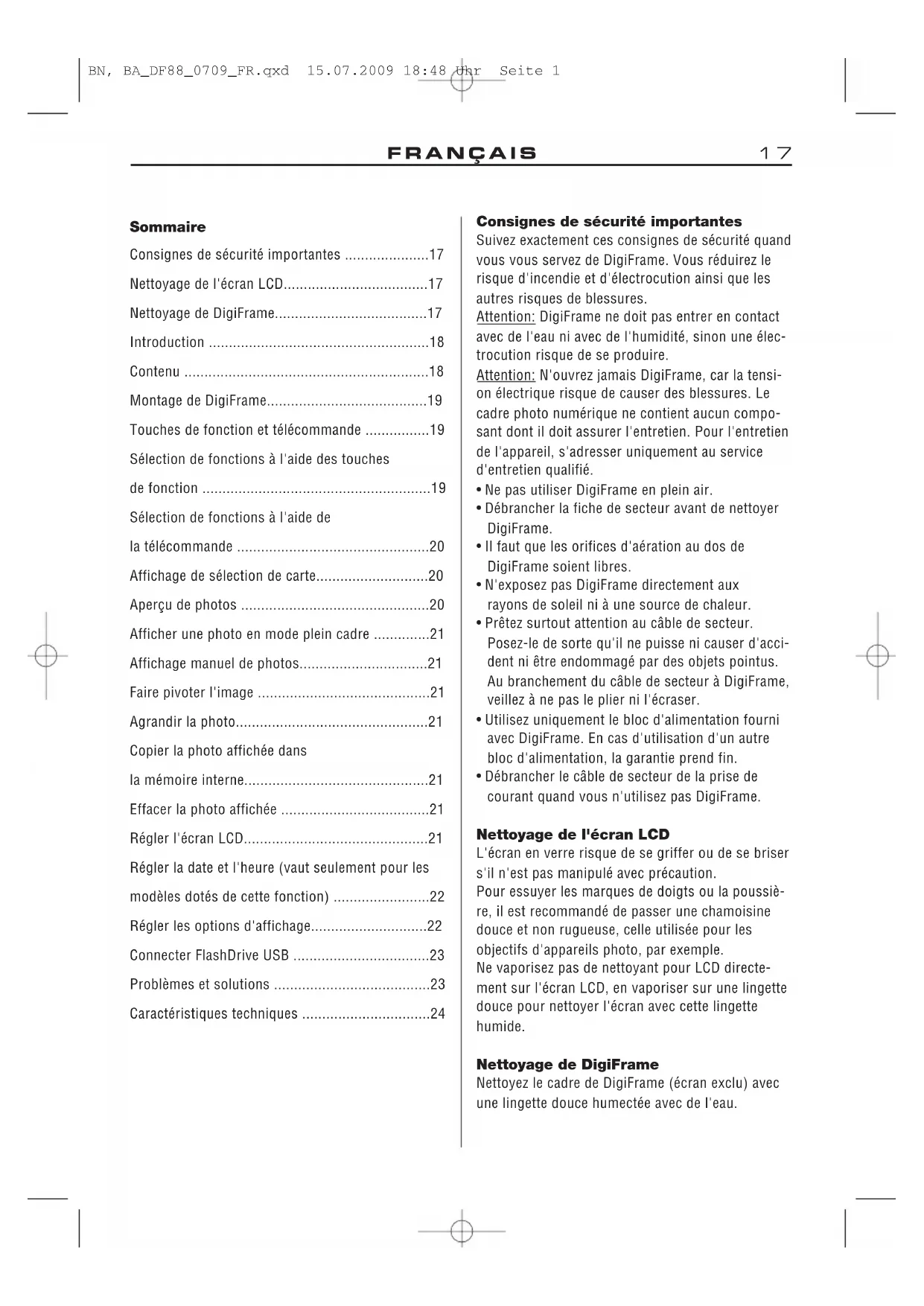 BN, BA_DF88_0709_FR.qxd 15.07.2009 18:48 Uhr Seite 6FRANÇAIS 23