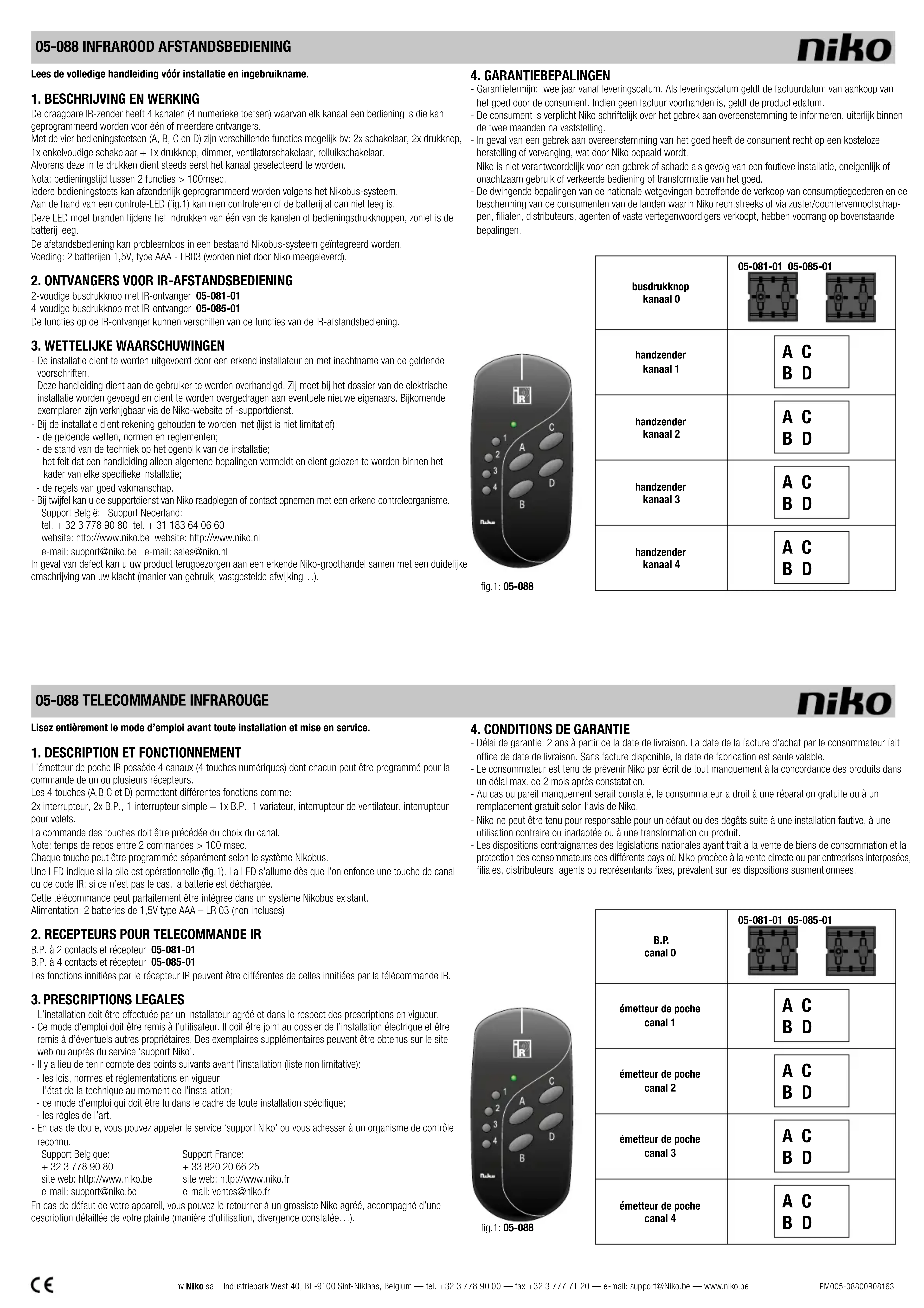 05088 - Télécommande Niko - Notice d'utilisation et mode d'emploi gratuit