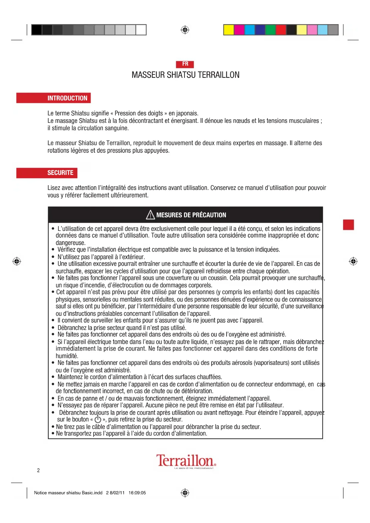MODE D'EMPLOI Shiatsu Basic TERRAILLON