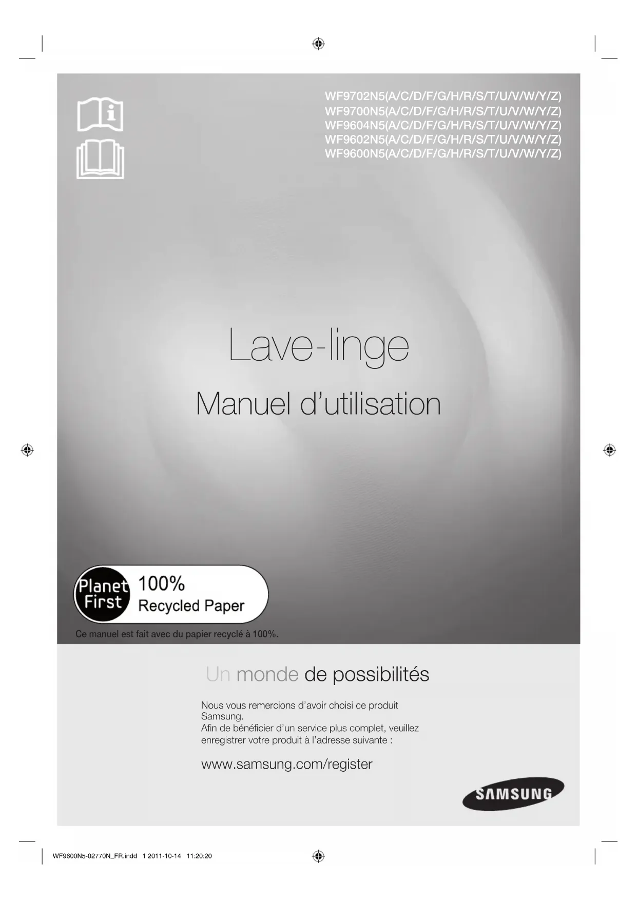 WF9600N5(A/C/D/F/G/H/R/S/T/U/V/W/Y/Z) WF9600N5-02770N_FR.indd 1 2011-10-14 11:20:202_ Caractéristiques de votre nouveau lave-linge Samsung