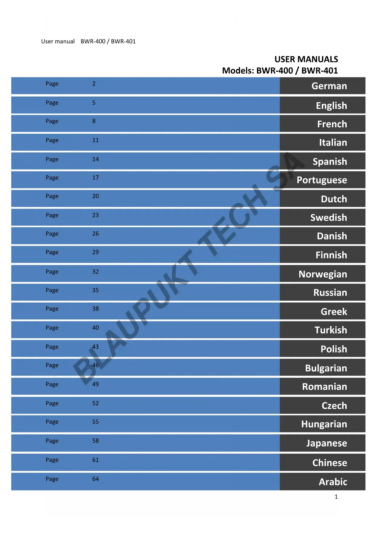 BLAUPUKT TECH SAUser manual BWR-400 / BWR-401