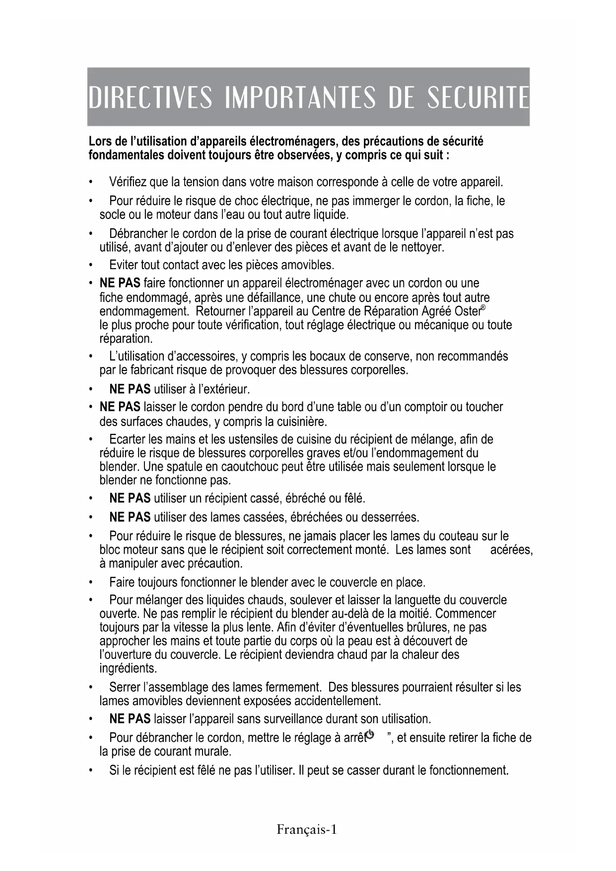 MODE D'EMPLOI BLSTDGB00013 OSTER