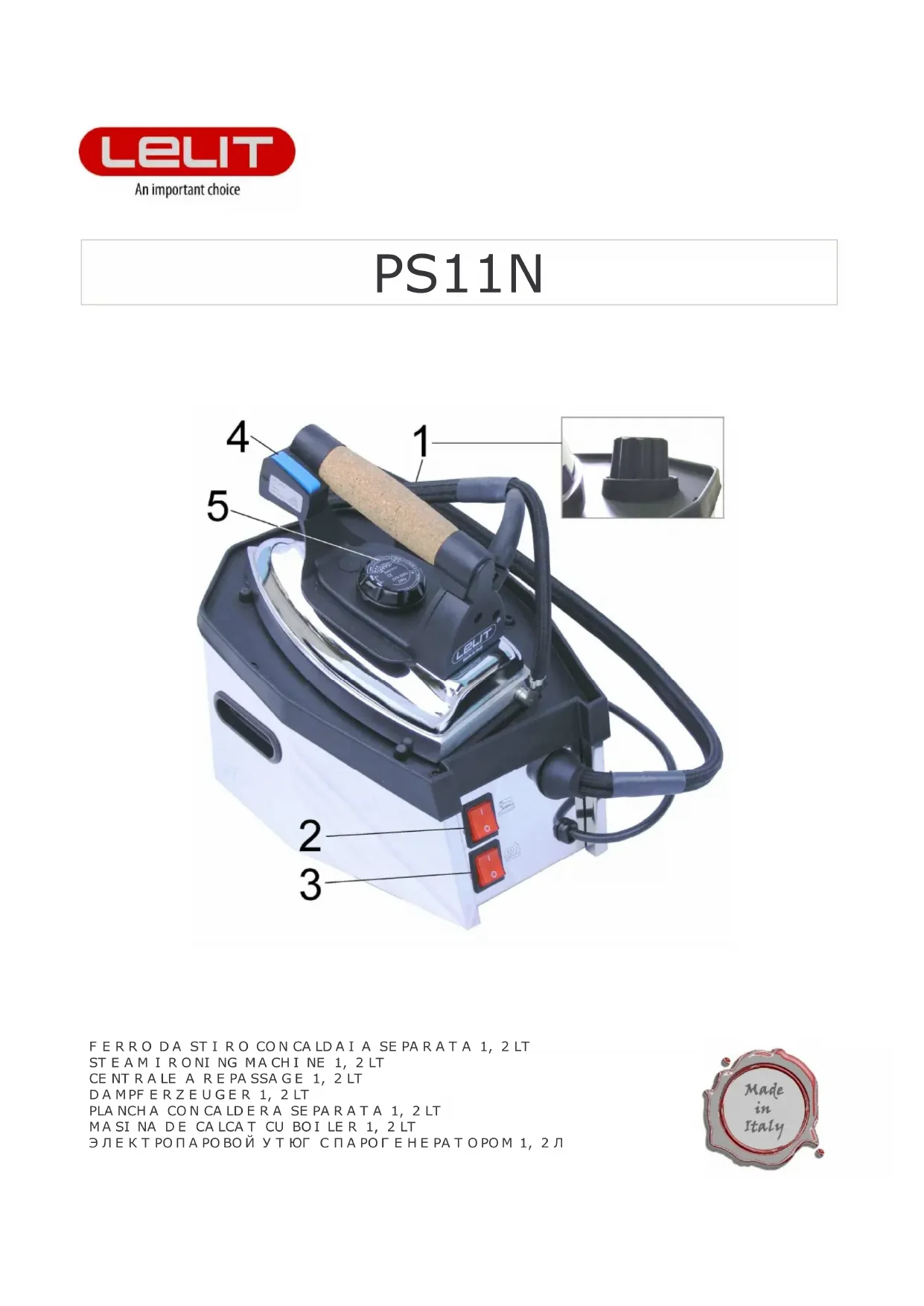 PS11N - Fer à repasser Lelit - Notice d'utilisation et mode d'emploi gratuit