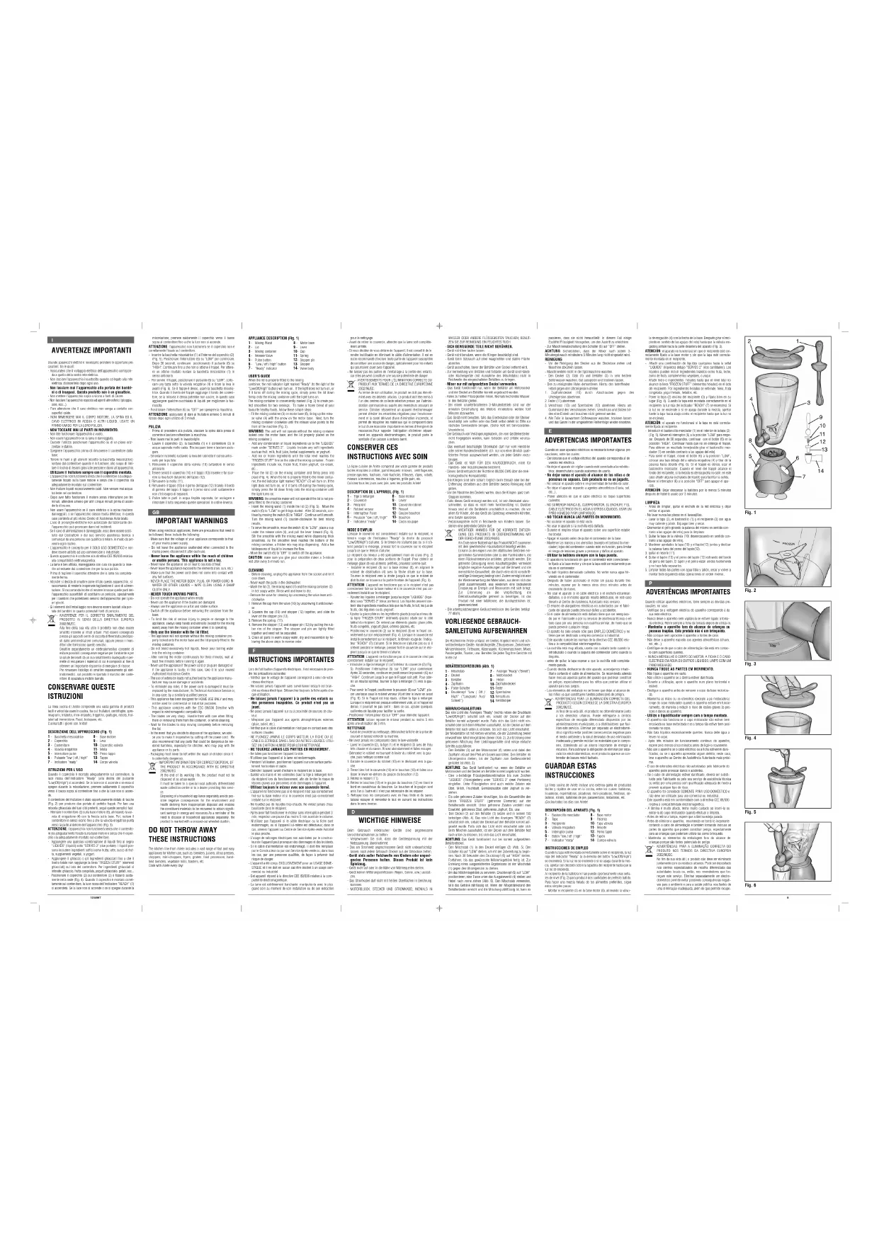 5201 - Blender ARIETE - Notice d'utilisation et mode d'emploi gratuit
