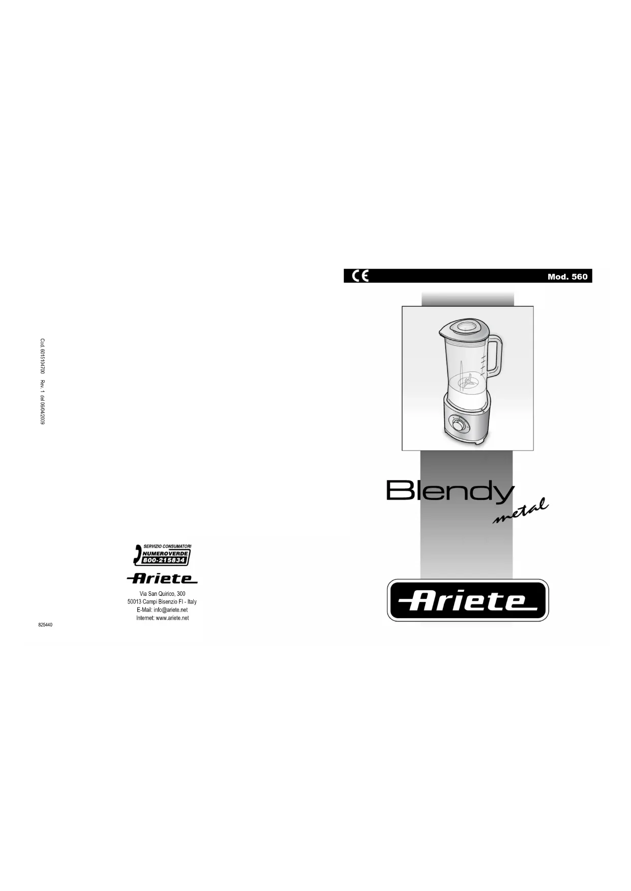 560 - Blender ARIETE - Notice d'utilisation et mode d'emploi gratuit