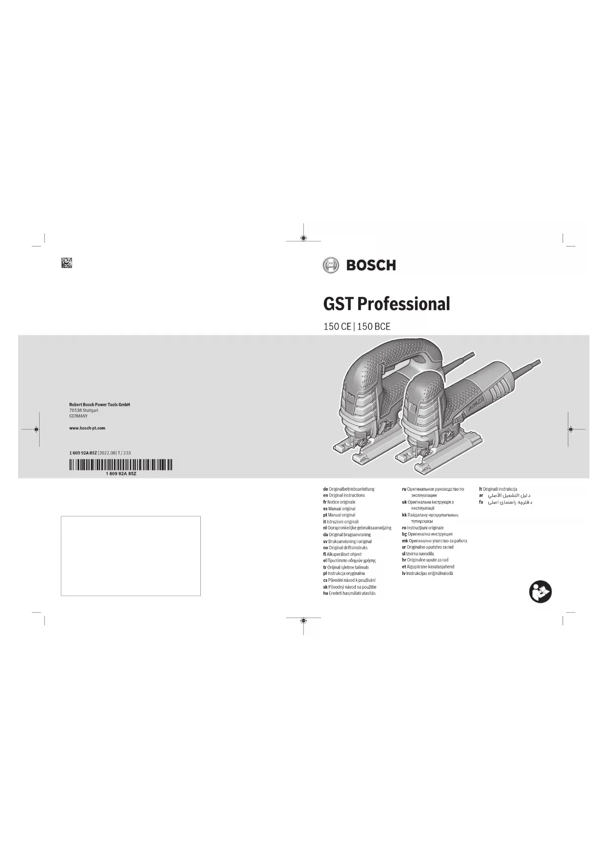 Retrouvez gratuitement la notice de l'appareil GST 150 BCE Professional BOSCH au format PDF.