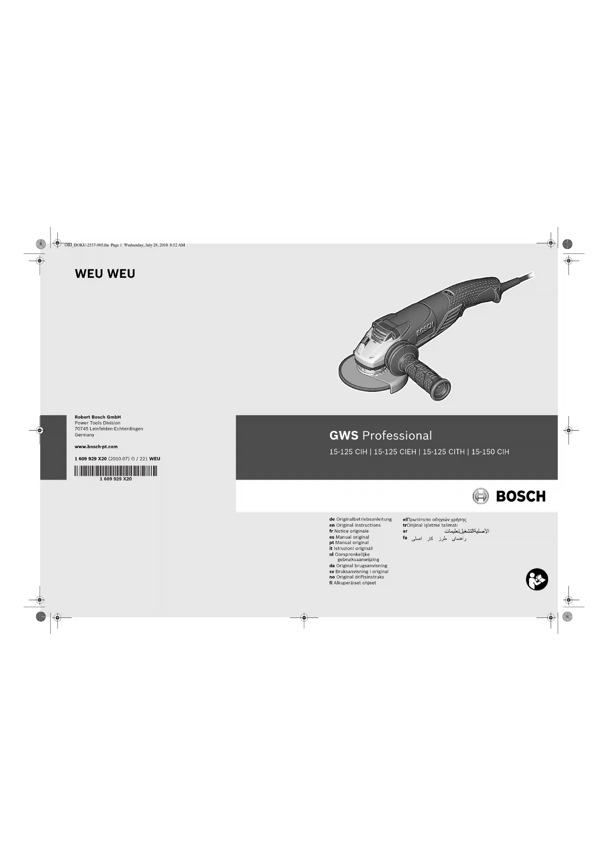 Retrouvez gratuitement la notice de l'appareil GWS 15125 CITH BOSCH au format PDF.