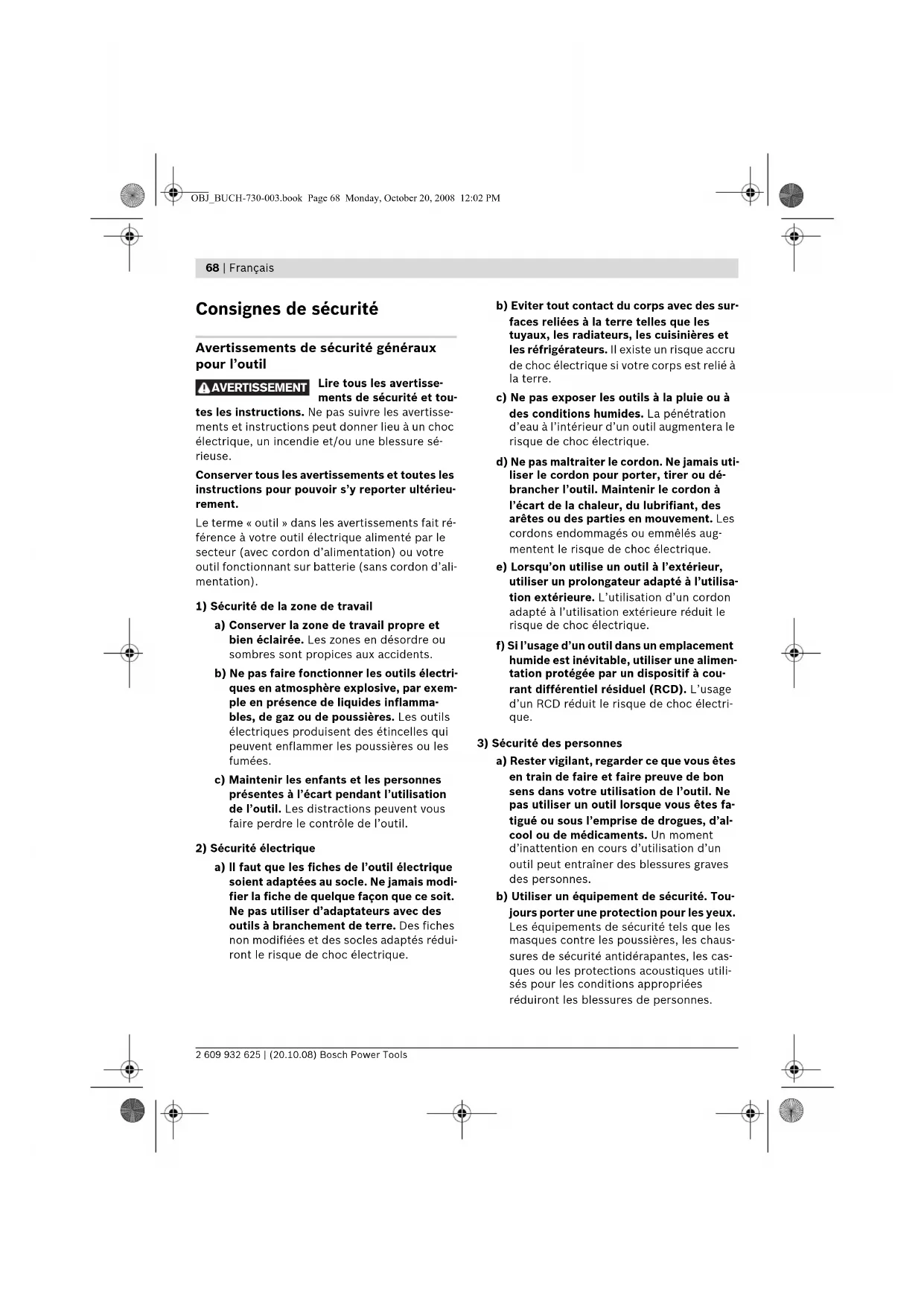 AVERTISSEMENT OBJ_BUCH-730-003.book Page 68 Monday, October 20, 2008 12:02 PMFrançais | 69