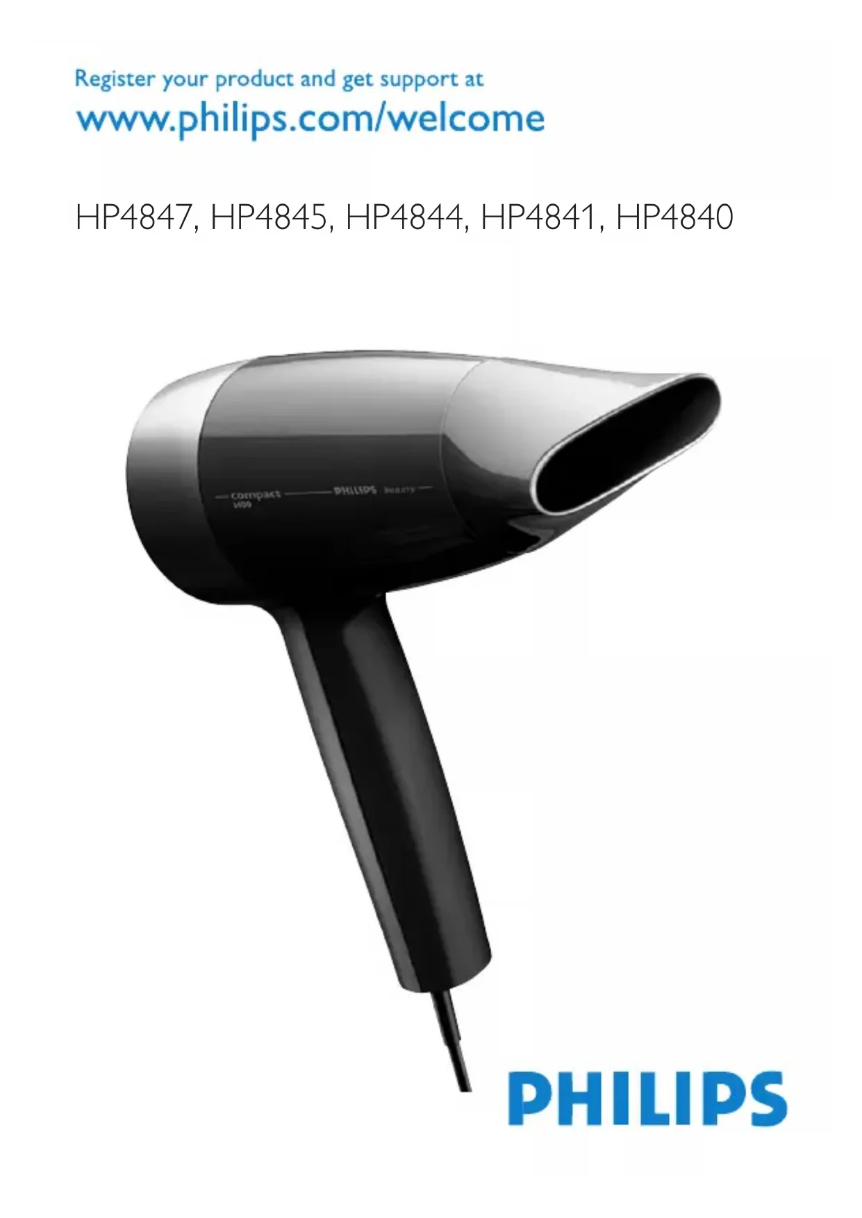 Compact HP4847 - Sèche-cheveux PHILIPS - Notice d'utilisation et mode d'emploi gratuit