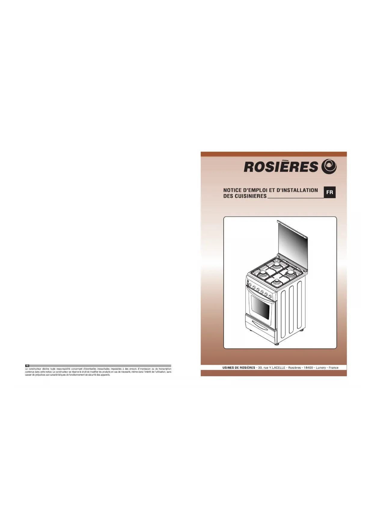 RCG5921RB1 - Cuisinière ROSIERES - Notice d'utilisation et mode d'emploi gratuit