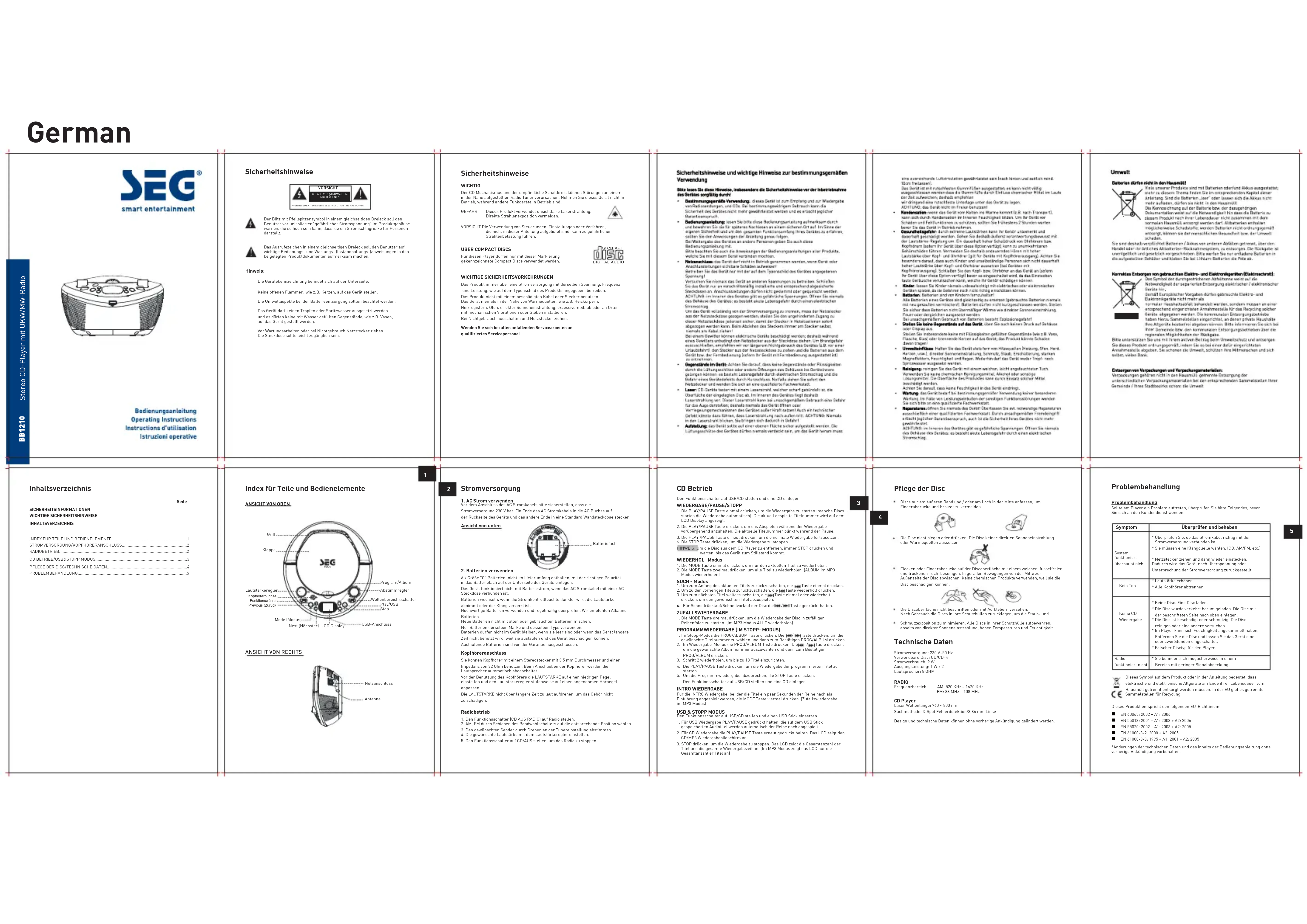 Boombox BB 1210 (bl) - Lecteur/enregistreur de cd SEG - Notice d'utilisation et mode d'emploi gratuit