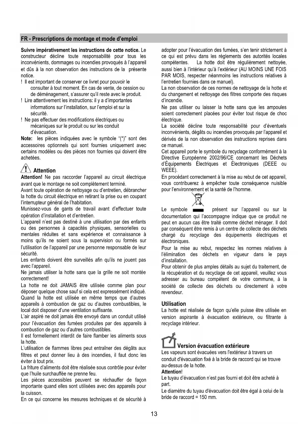 FR - Prescriptions de montage et mode d’emploi