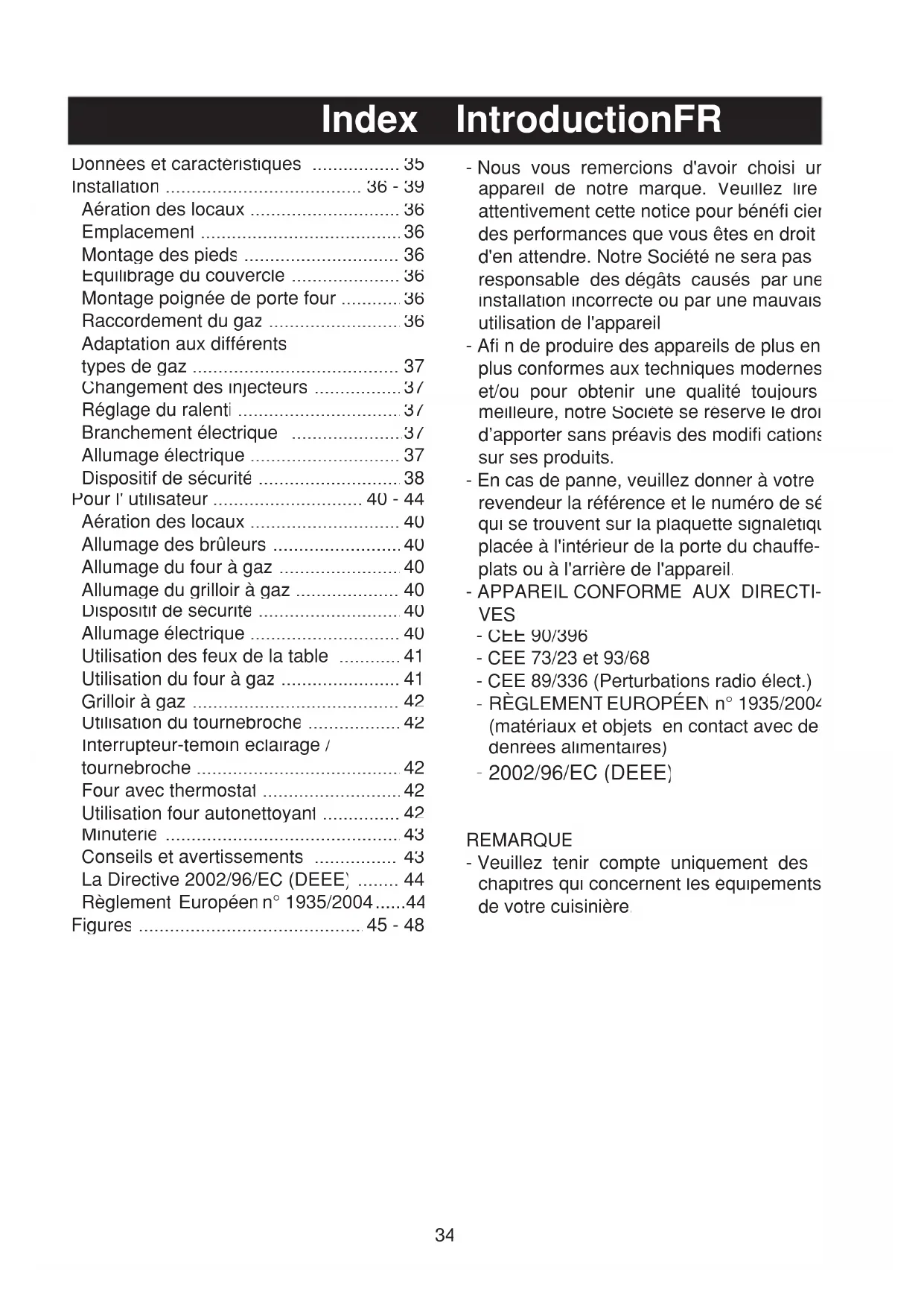 2002/96/EC (DEEE) REMARQUE - Veuillez tenir compte uniquement des chapitres qui concernent les équipements de votre cuisinière.35 Données et caractéristiques techniques