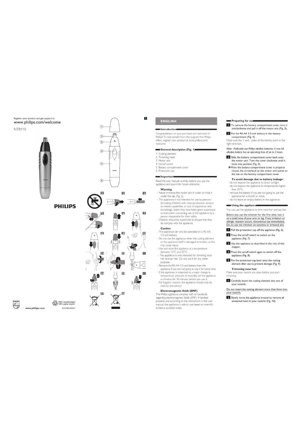 Retrouvez gratuitement la notice de l'appareil Norelco Series 1000 NT8110 PHILIPS au format PDF.