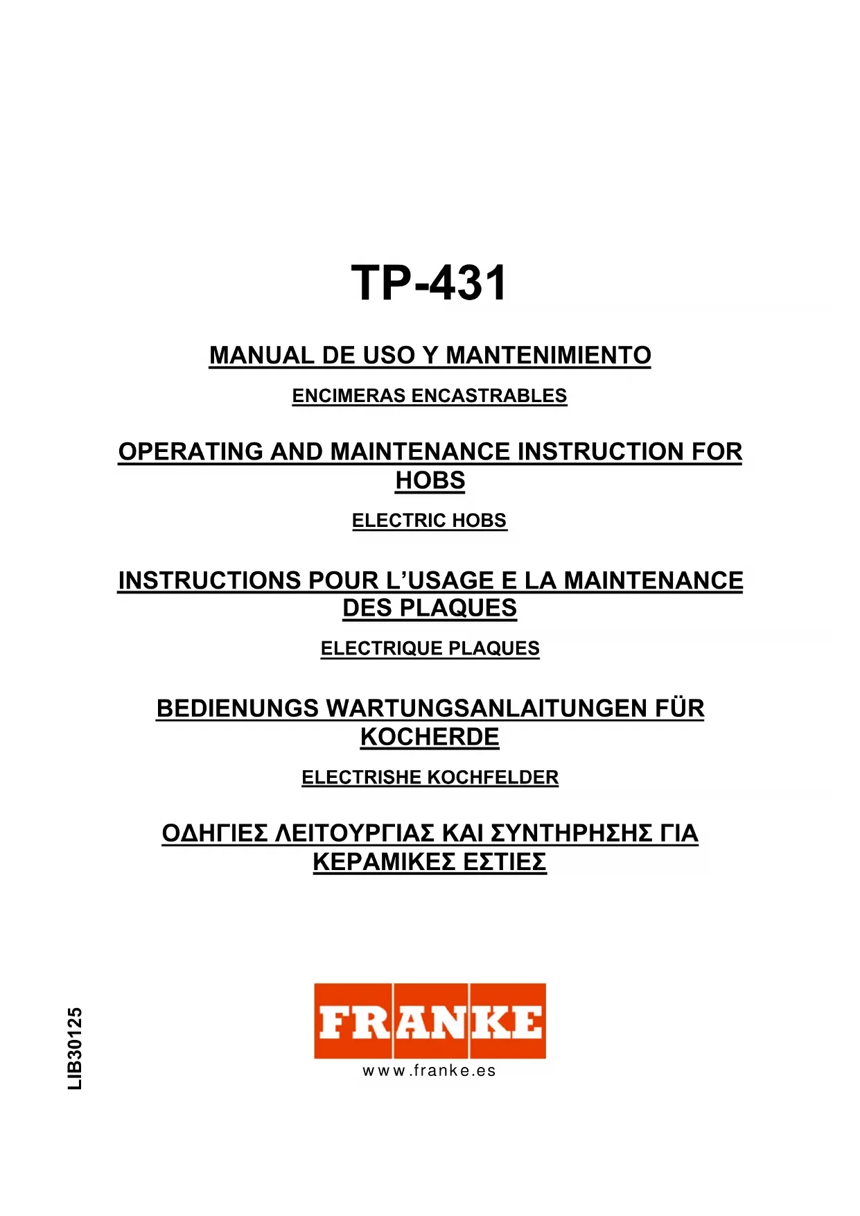 Retrouvez gratuitement la notice de l'appareil TP431 FRANKE au format PDF.