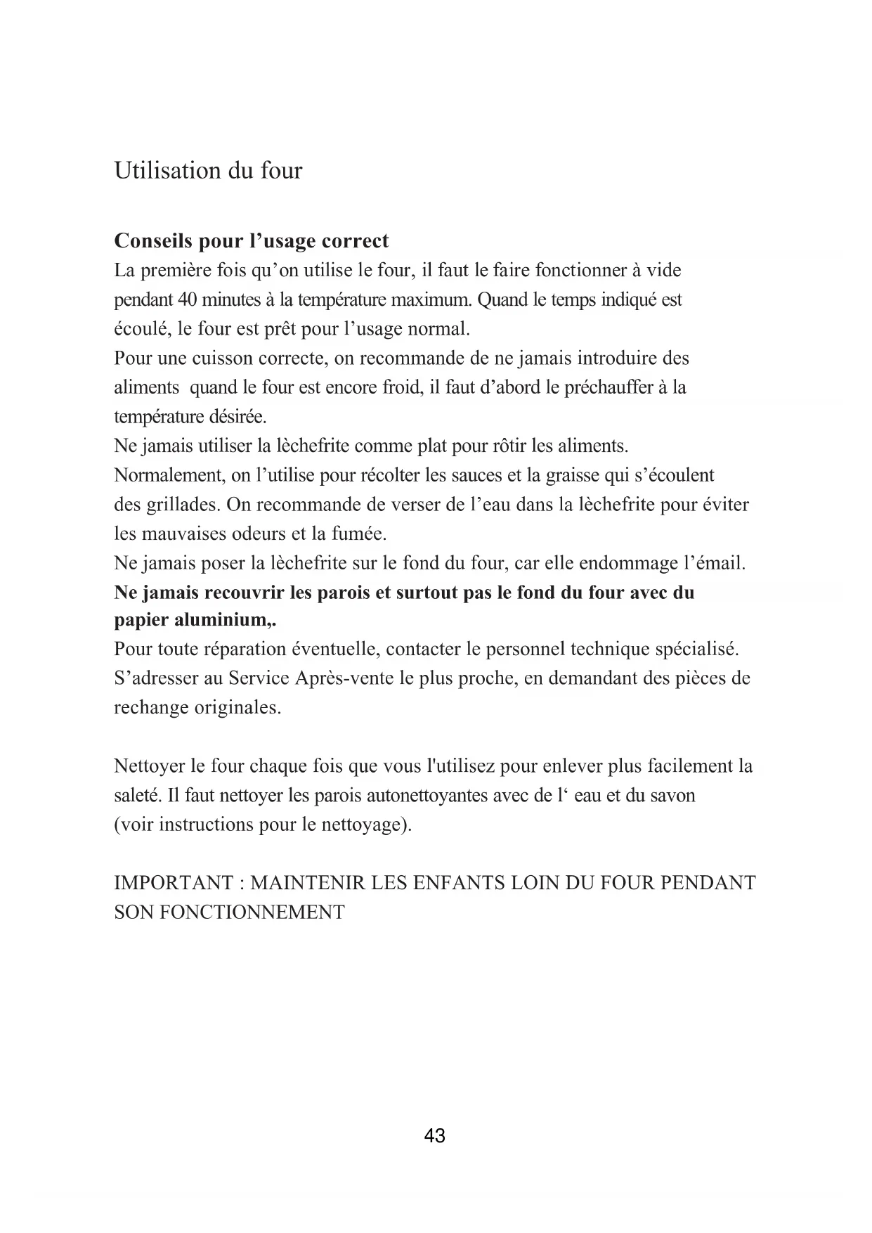IMPORTANT : MAINTENIR LES ENFANTS LOIN DU FOUR PENDANT SON FONCTIONNEMENT