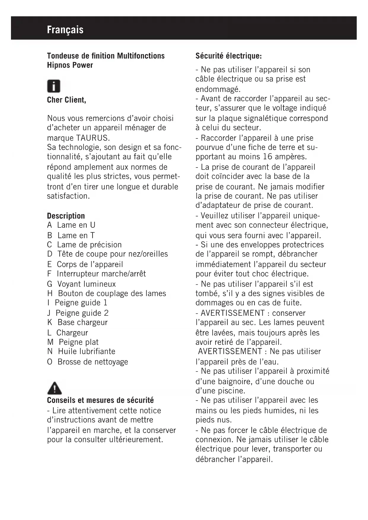 Hipnos Power - Tondeuse à barbe TAURUS - Notice d'utilisation et mode d'emploi gratuit