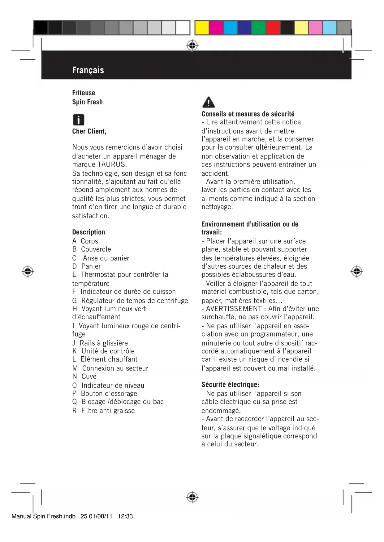 Spin Fresh - Friteuse TAURUS - Notice d'utilisation et mode d'emploi gratuit