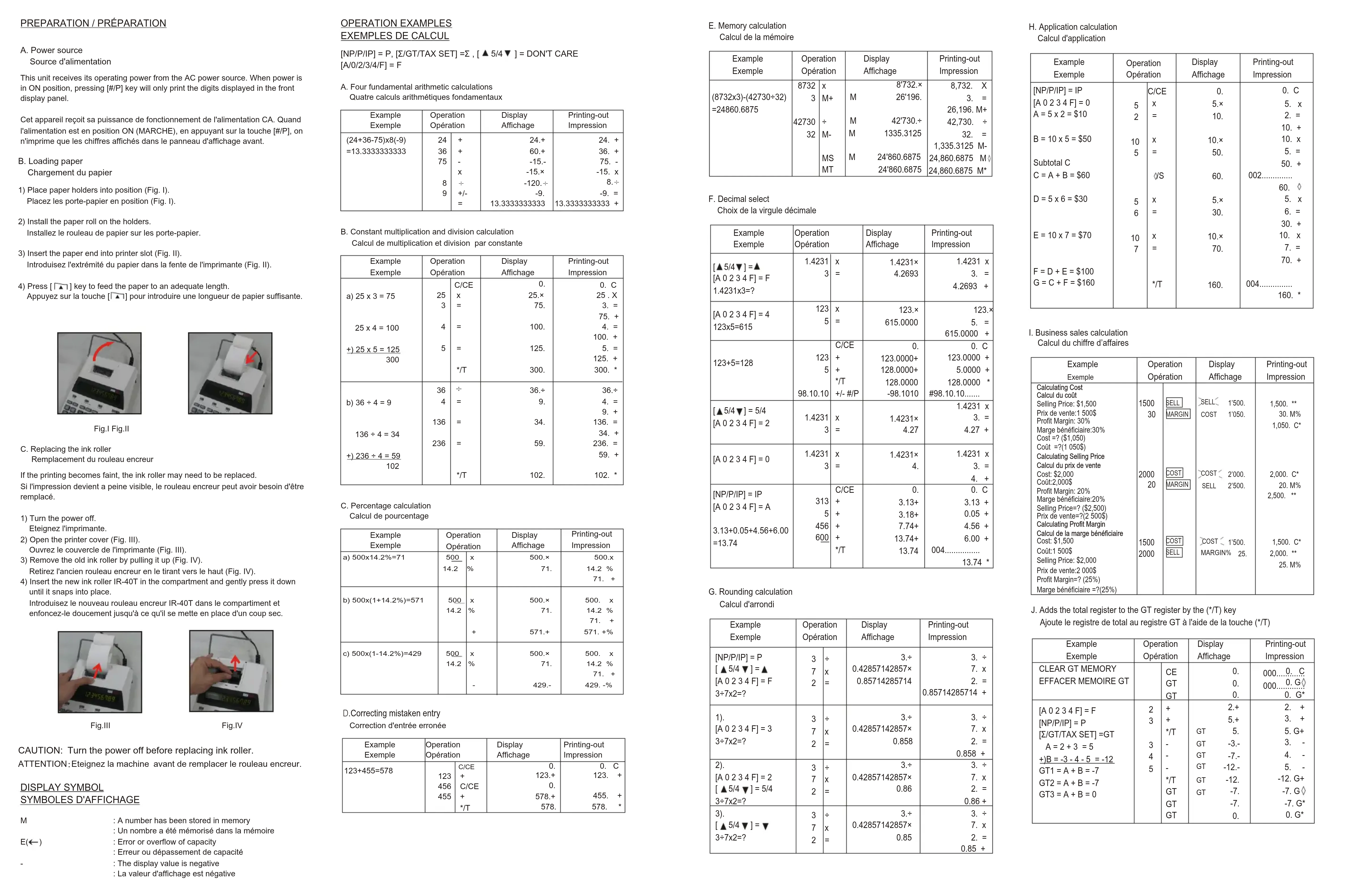 | Example Example | Operation Operation | Display Afficage | Printing-out Impression | |