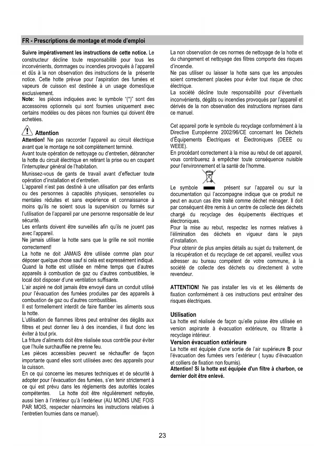 notice. Cette hotte prévue pour l’aspiration des fumées et