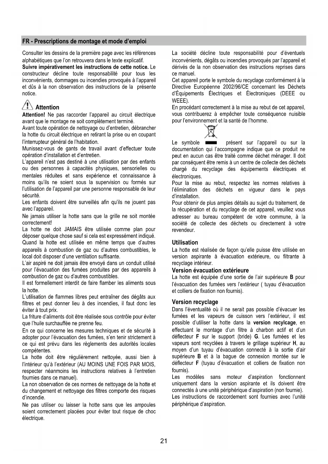 FR - Prescriptions de montage et mode d’emploi