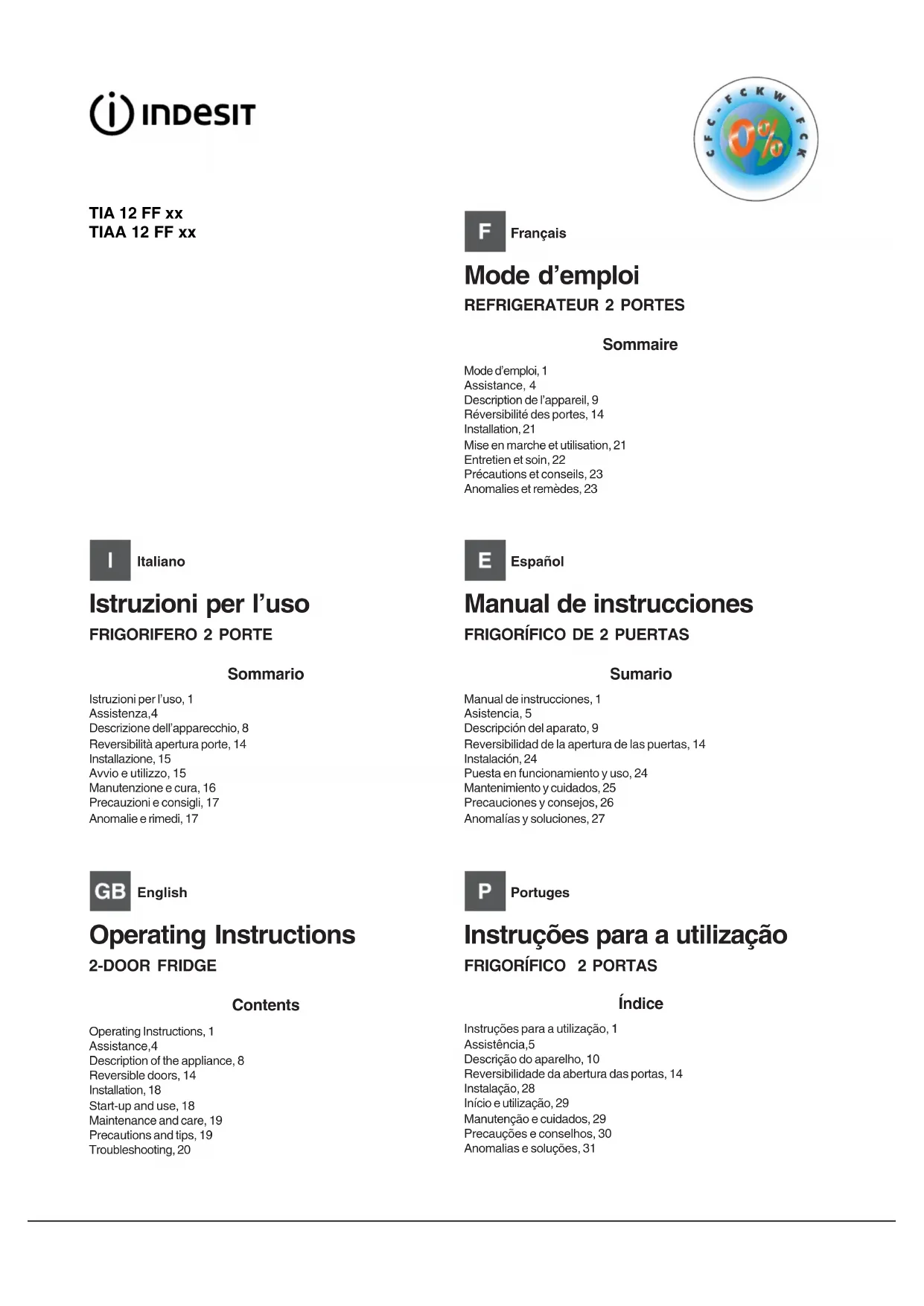 TIAA 12 FF SI - Réfrigérateur INDESIT - Notice d'utilisation et mode d'emploi gratuit