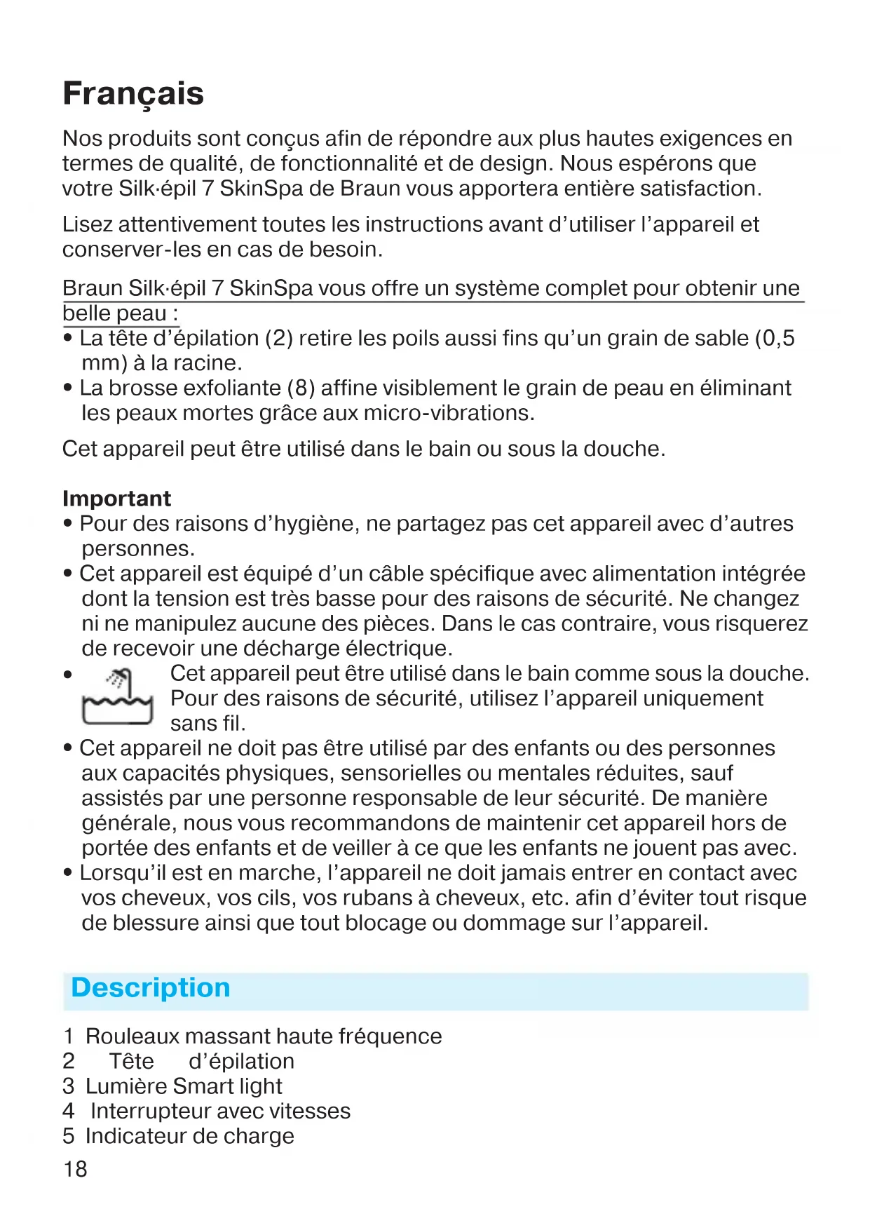 | Utilisation | Utilisable sous l'eau pour un épilage doux, plusieurs vitesses pour s'adapter à la sensibilité de la peau. |