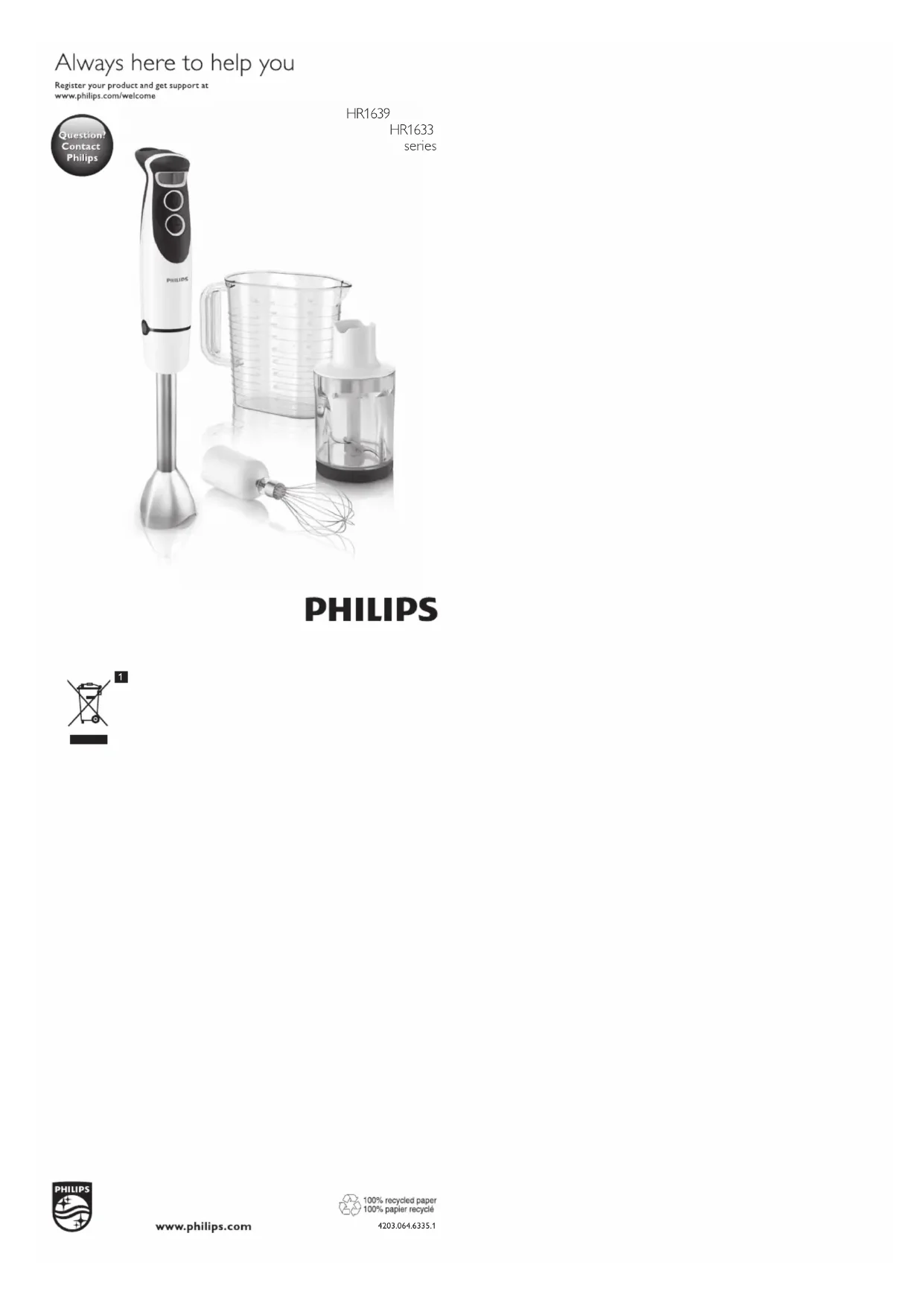 Viva Collection HR1638 - Blender PHILIPS - Notice d'utilisation et mode d'emploi gratuit
