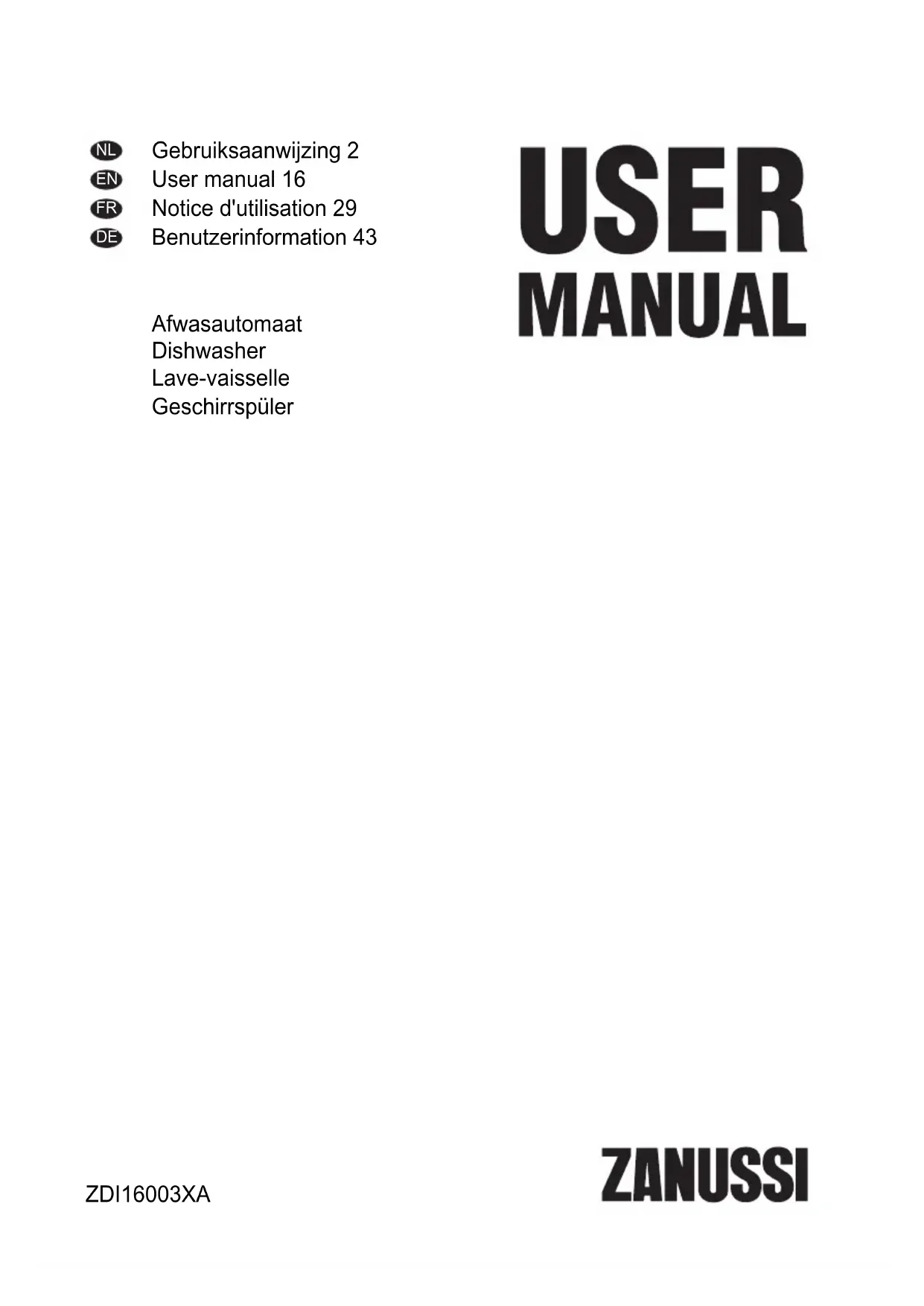 ZDI16003XA - Lave-vaisselle ZANUSSI - Notice d'utilisation et mode d'emploi gratuit