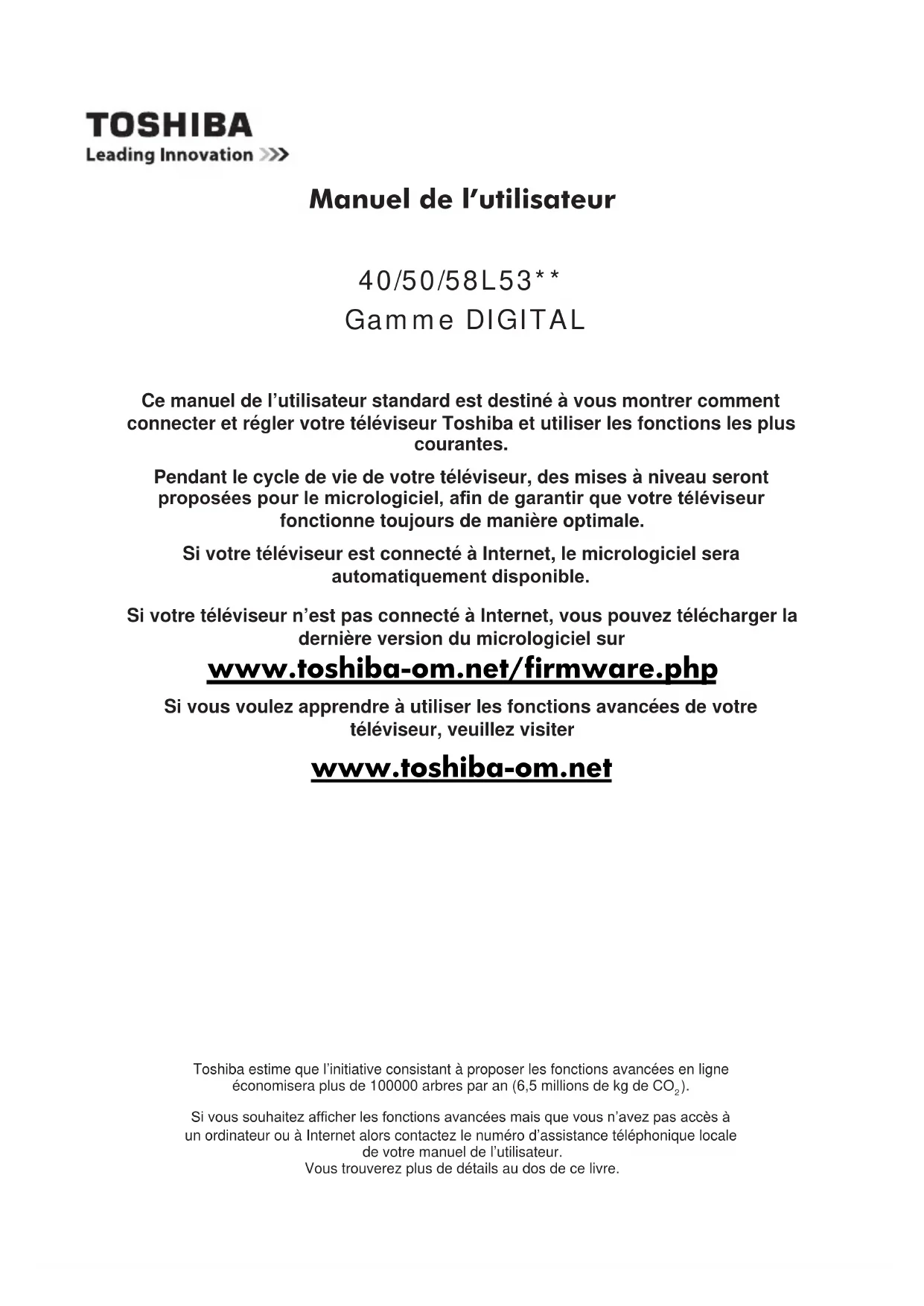 Retrouvez gratuitement la notice de l'appareil 58L5333DG TOSHIBA au format PDF.