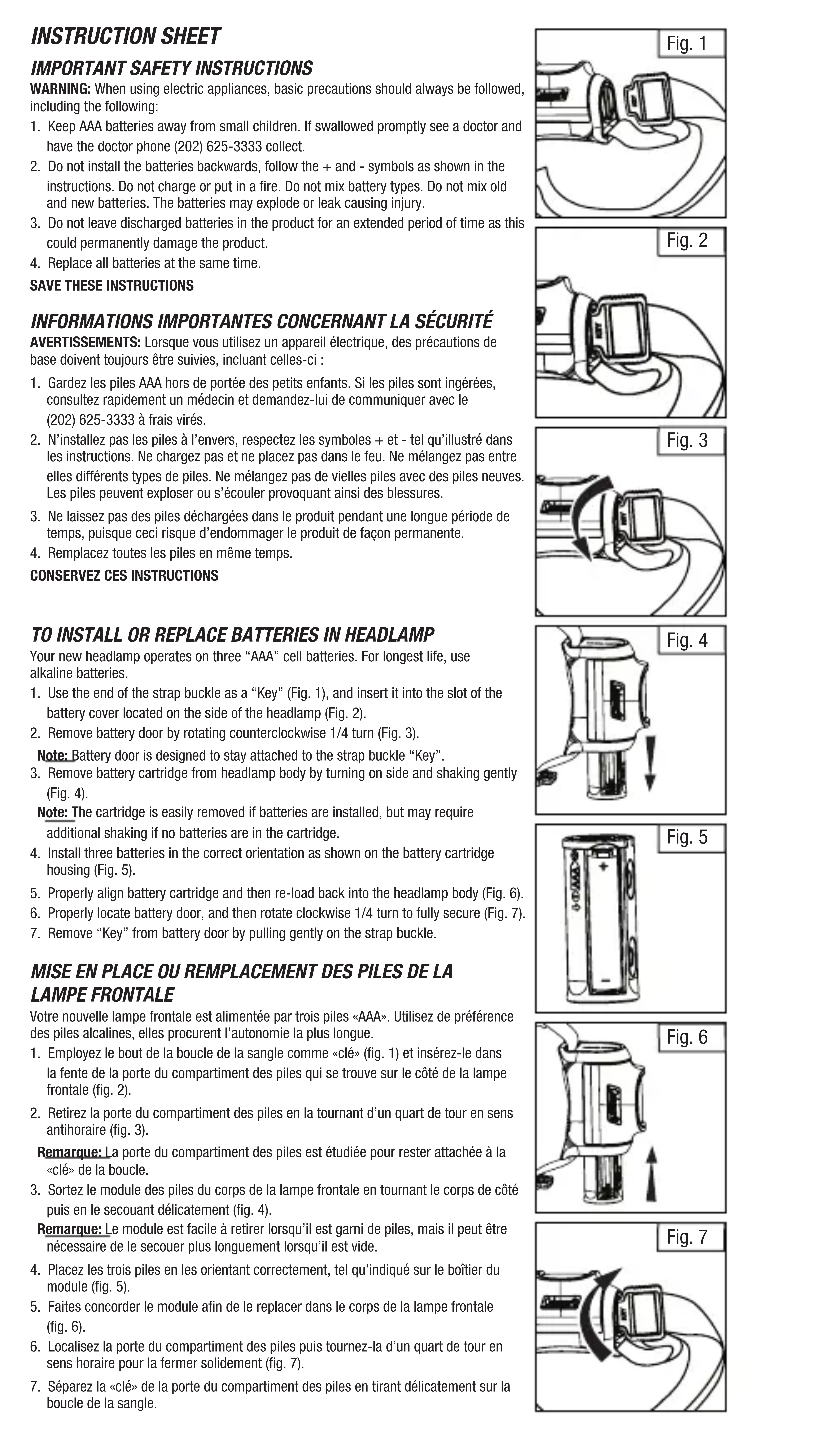 MISE EN PLACE OU REMPLACEMENT dES PILES dE LA LAMPE FRONTALE Votre nouvelle lampe frontale est alimentée par trois piles «AAA». Utilisez de préférence des piles alcalines, elles procurent l’autonomie la plus longue.