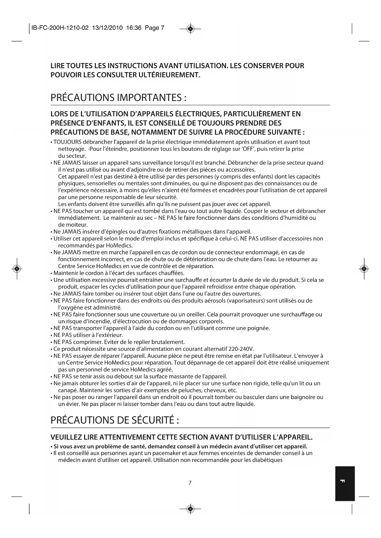 MODE D'EMPLOI FC 200HEU HOMEDICS