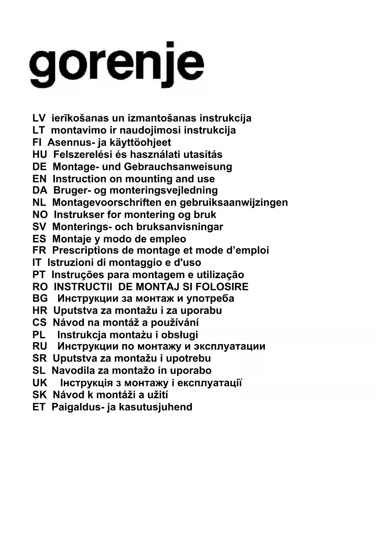 MODE D'EMPLOI DV5410X GORENJE