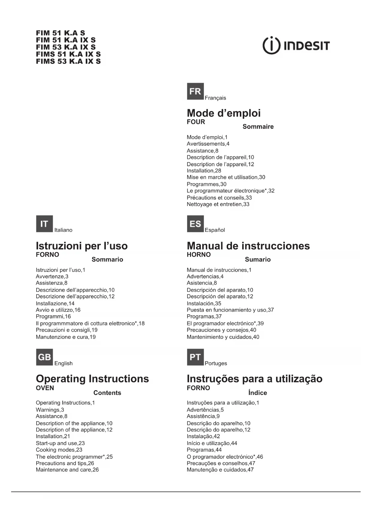 80779 - Four INDESIT - Notice d'utilisation et mode d'emploi gratuit