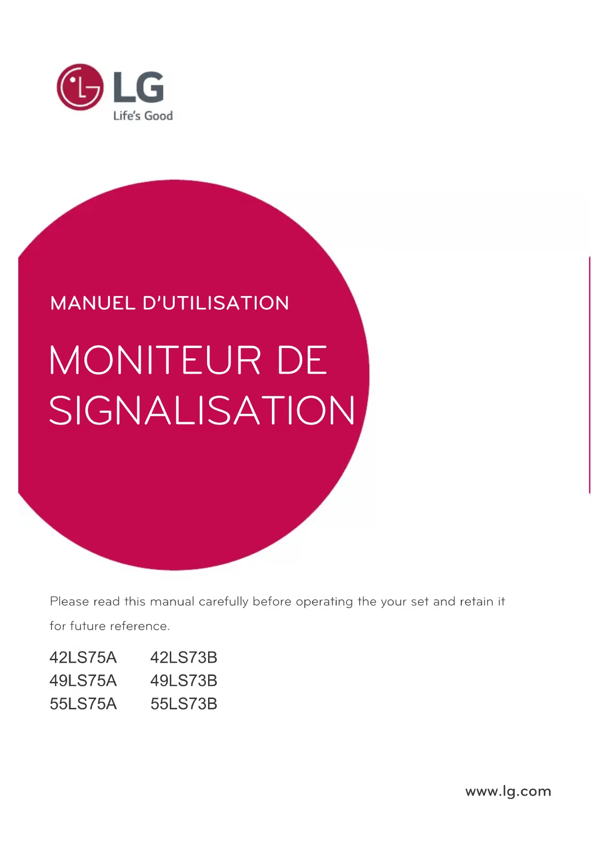 Téléchargez la notice de votre Moniteur au format PDF gratuitement ! Retrouvez votre notice 42LS75A - LG et reprennez votre appareil électronique en main. Sur cette page sont publiés tous les documents nécessaires à l'utilisation de votre appareil 42LS75A de la marque LG.