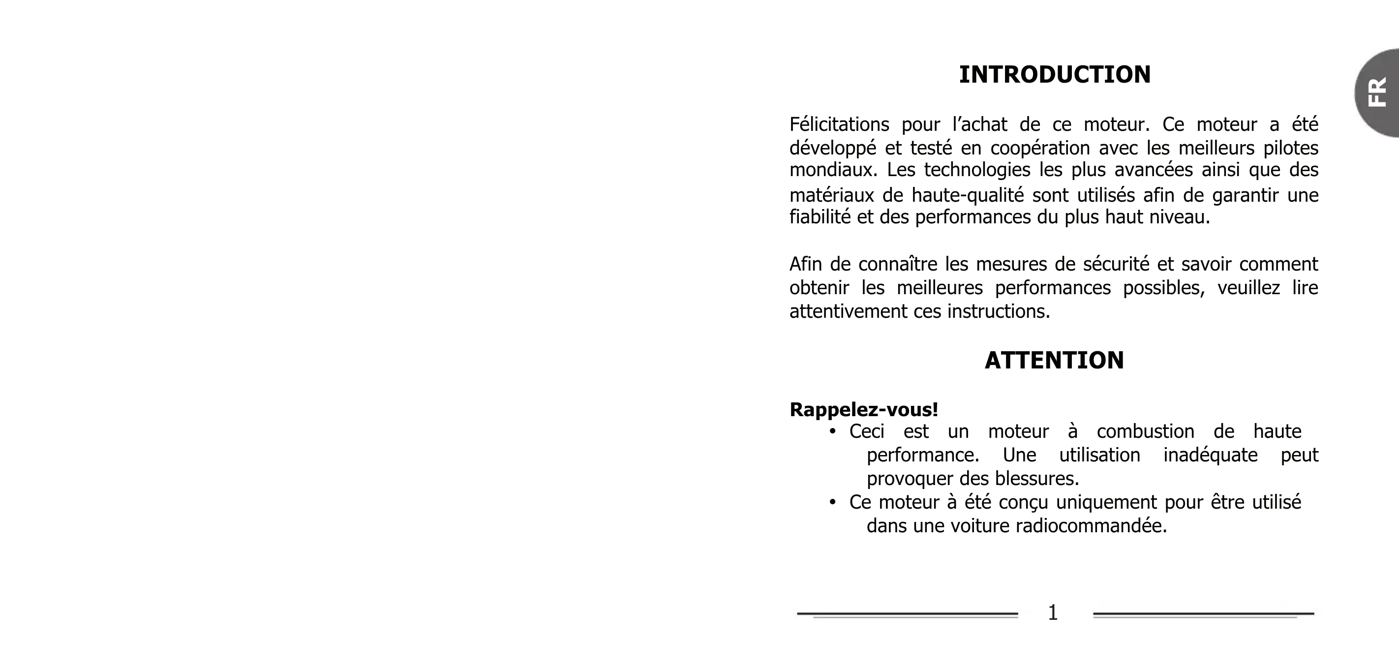 - Ceci est un moteur à combustion de haute performance. Une utilisation inadéquate peut provoquer des blessures.