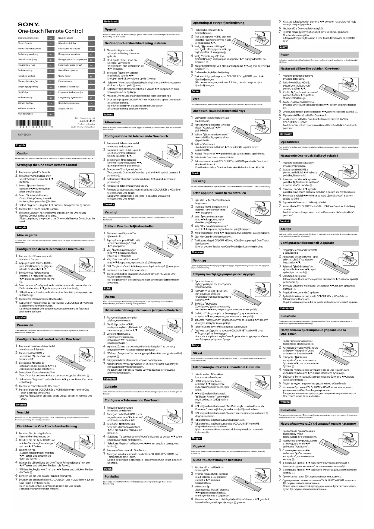 Mise en garde Avant d’utiliser cette télécommande Une touche, veuillez lire les consignes de sécurité du mode d’emploi de ce téléviseur. Configuration de la télécommande Une touche