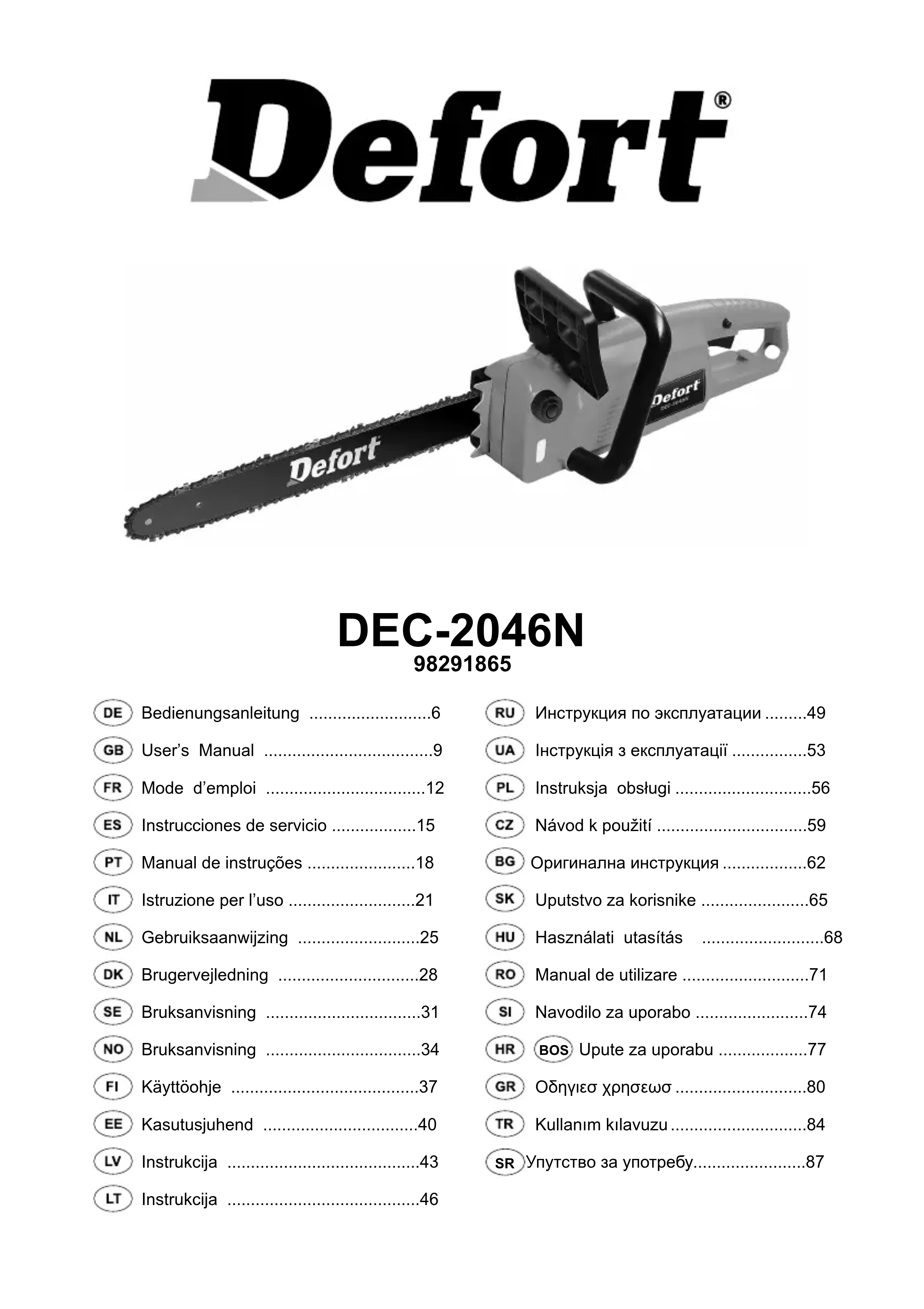 DEC2046N - Scie Defort - Notice d'utilisation et mode d'emploi gratuit