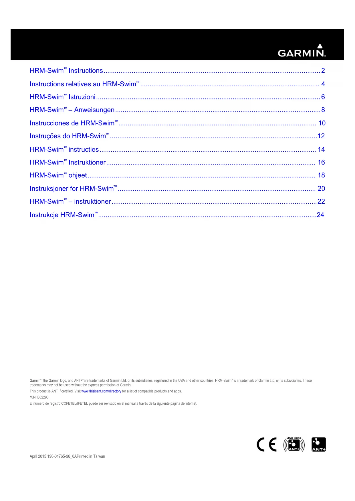 Retrouvez gratuitement la notice de l'appareil HRMSwim GARMIN au format PDF.