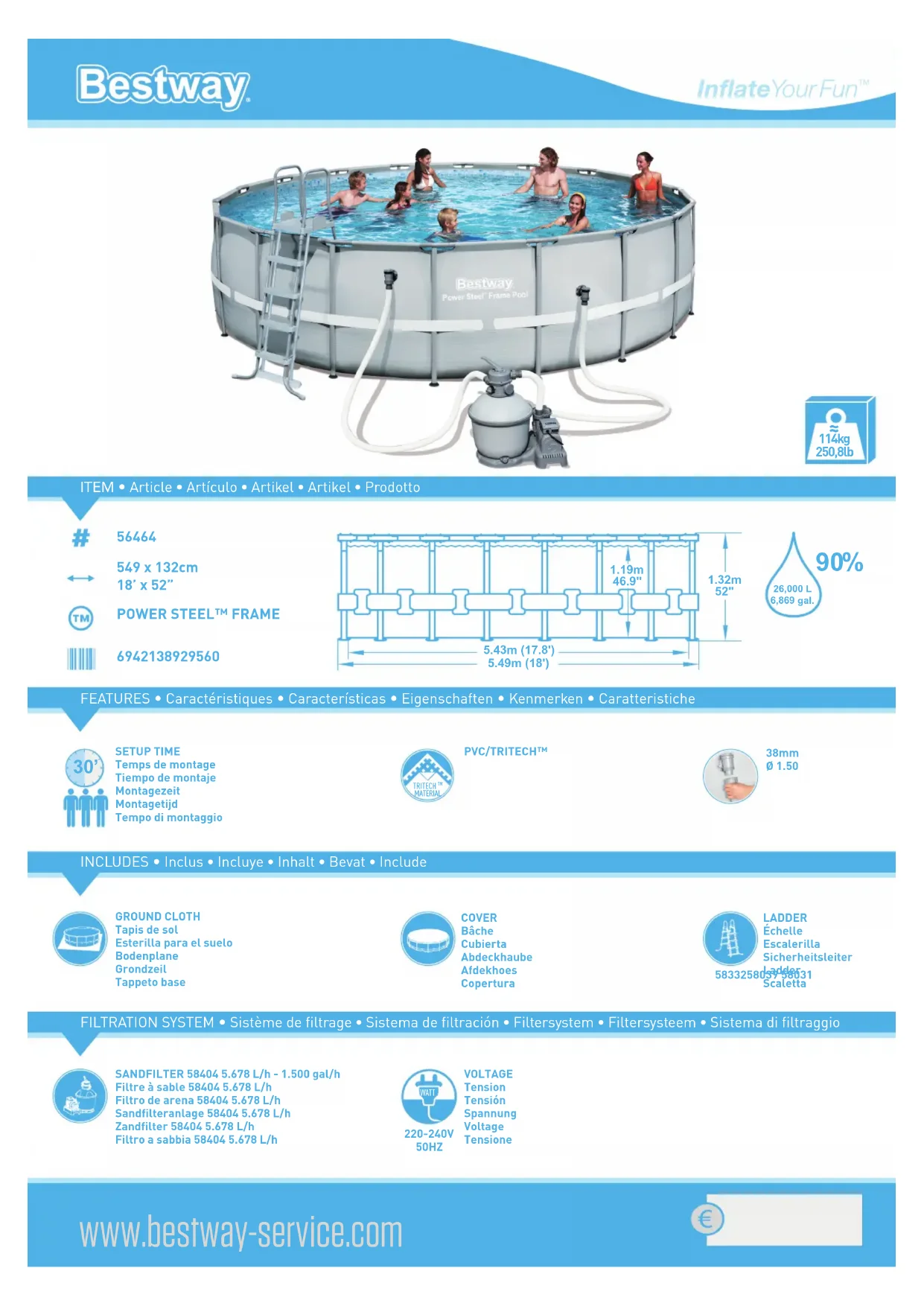 Retrouvez gratuitement la notice de l'appareil Power Steel 56464 BESTWAY au format PDF.