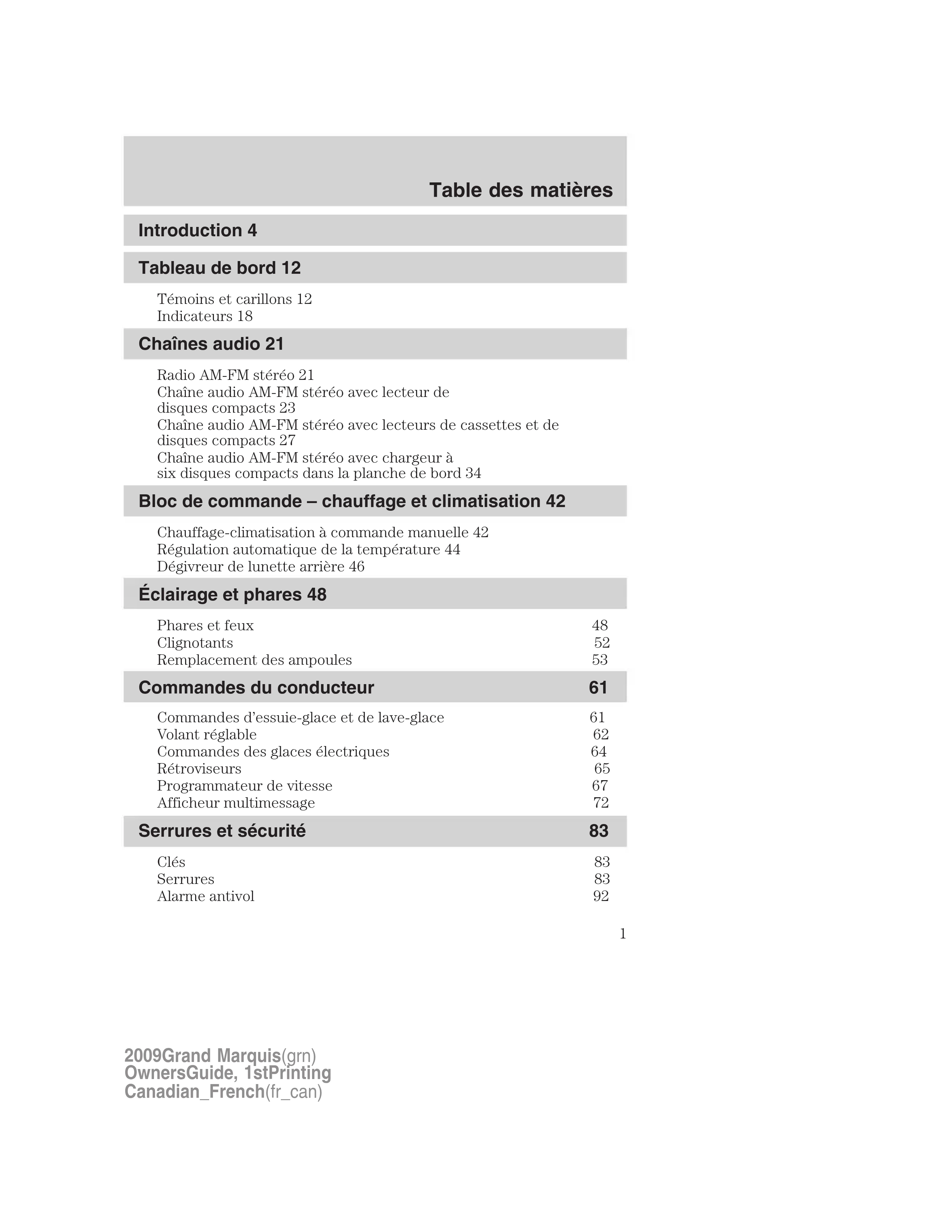 Grand Marquis (2009) - Voiture Mercury - Notice d'utilisation et mode d'emploi gratuit