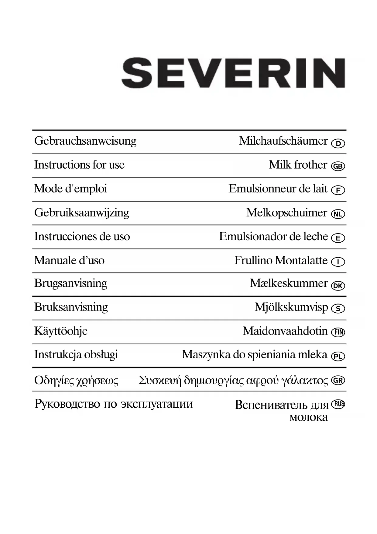 SM 9491 - Mousseur à lait SEVERIN - Notice d'utilisation et mode d'emploi gratuit